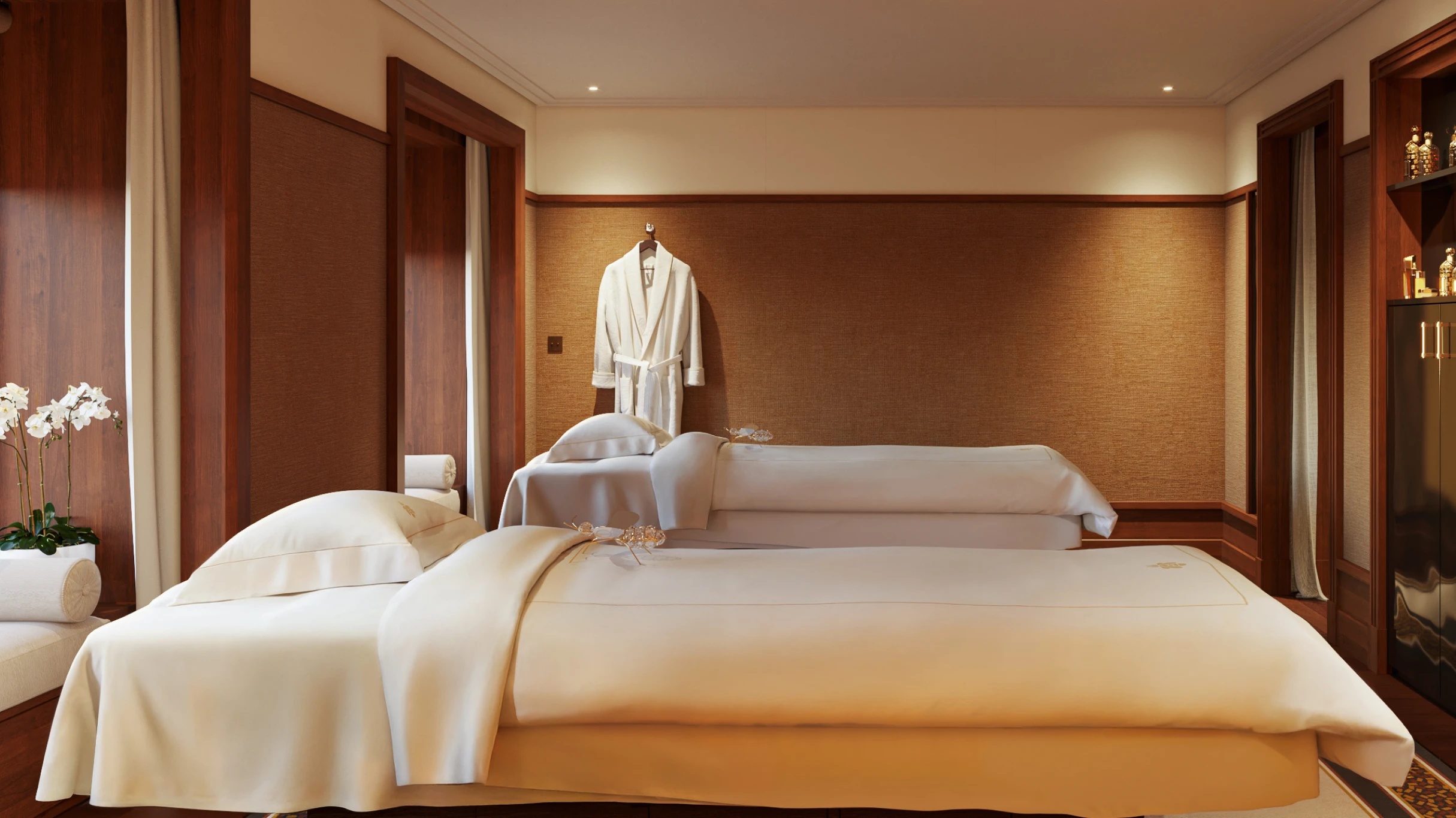 Tọa lạc tại trung tâm du thuyền, Guerlain Spa rộng 500m² bao gồm bốn phòng trị liệu, trong đó có một phòng đôi VIP, cùng không gian wellness toàn diện được thiết kế như một “ốc đảo tái tạo”. Đây là nơi khách có thể tìm lại sự cân bằng và kết nối với chính mình.