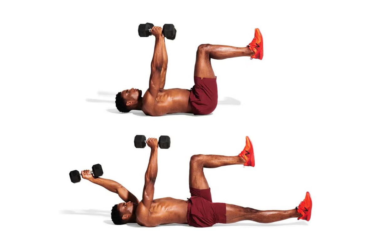 - Thân trên: Dumbbell Shoulder Press, Dumbbell Row, Chest Press là ba bài giúp cải thiện vai, lưng và ngực một cách toàn diện.