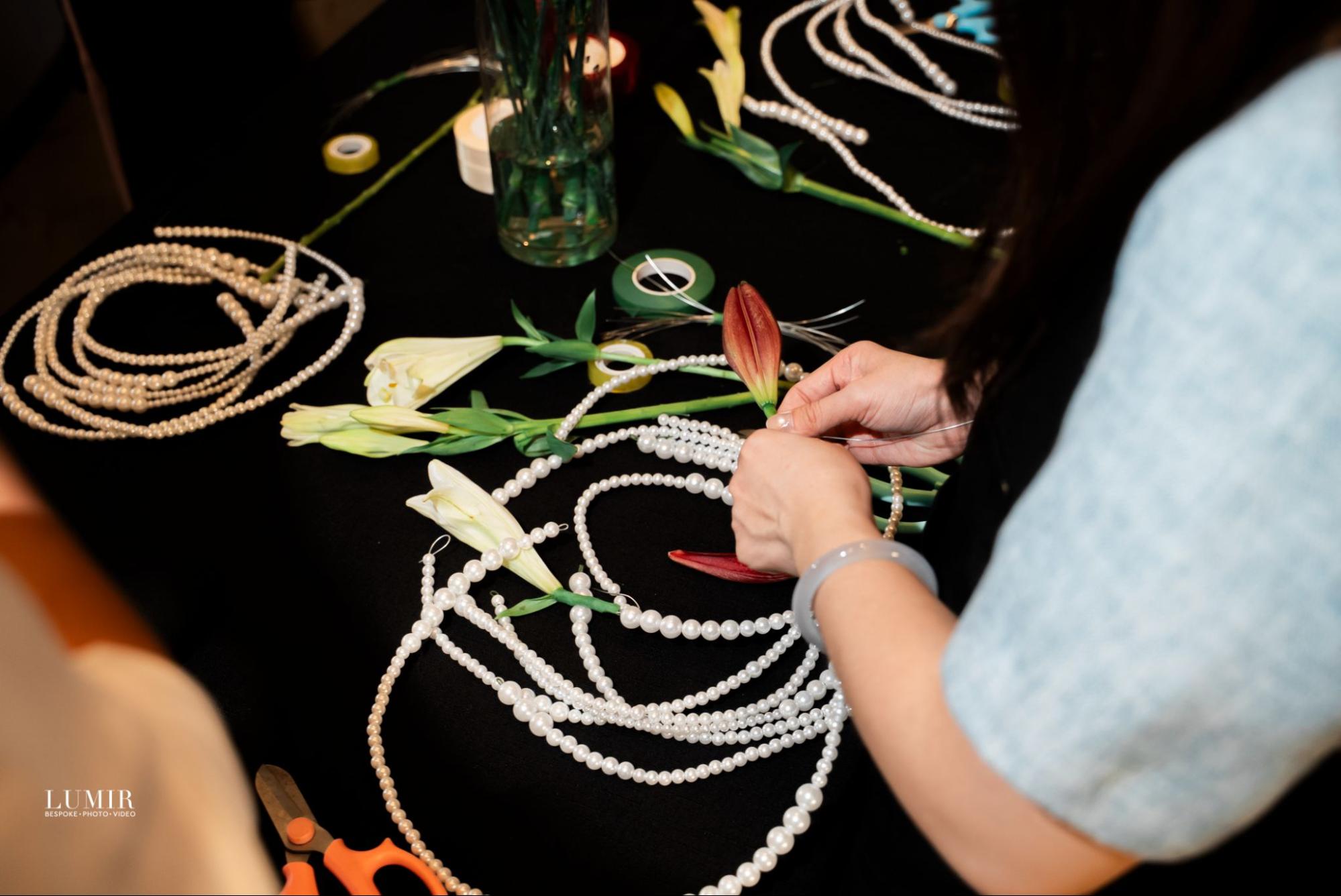 Tại workshop kết hoa cưới dưới sự hướng dẫn từ các chuyên gia của The Timeless Flower, các cặp đôi được chính tay sáng tạo bó hoa cưới mang đậm dấu ấn cá nhân – một biểu tượng cho sự kết nối và hòa hợp trong tình yêu. Trong khi đó, góc pha chế cocktail cùng nhà sáng tạo nội dung Dustin Phúc Nguyễn (Dustin On The Go) và các chuyên gia từ BARSON mang đến cho các khách tham dự một công thức đồ uống đậm chất Việt – cocktail trầu cau.