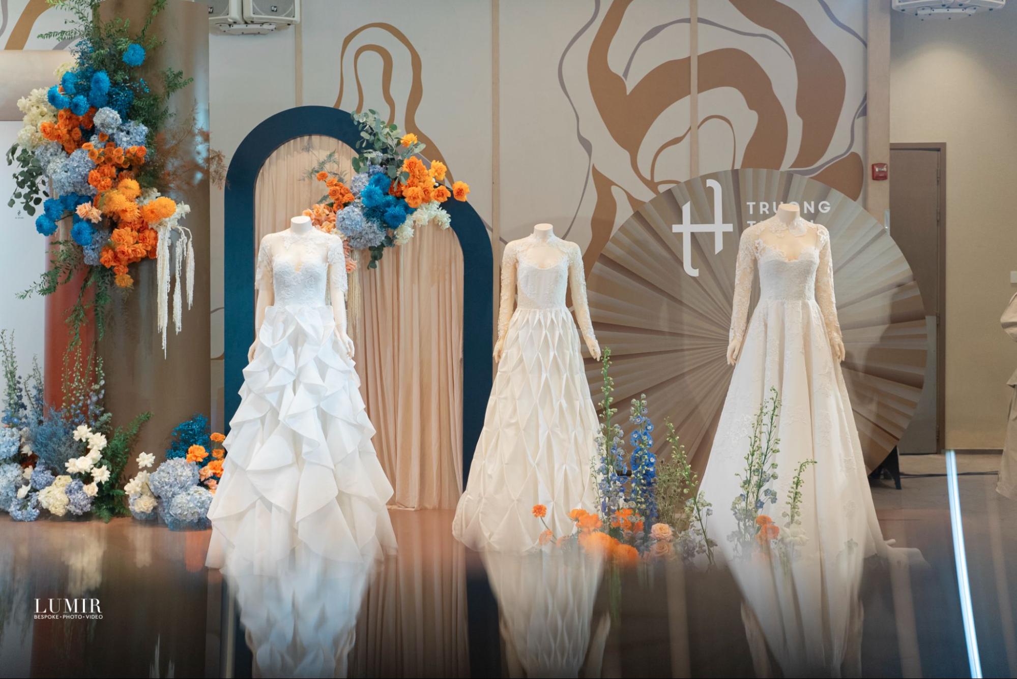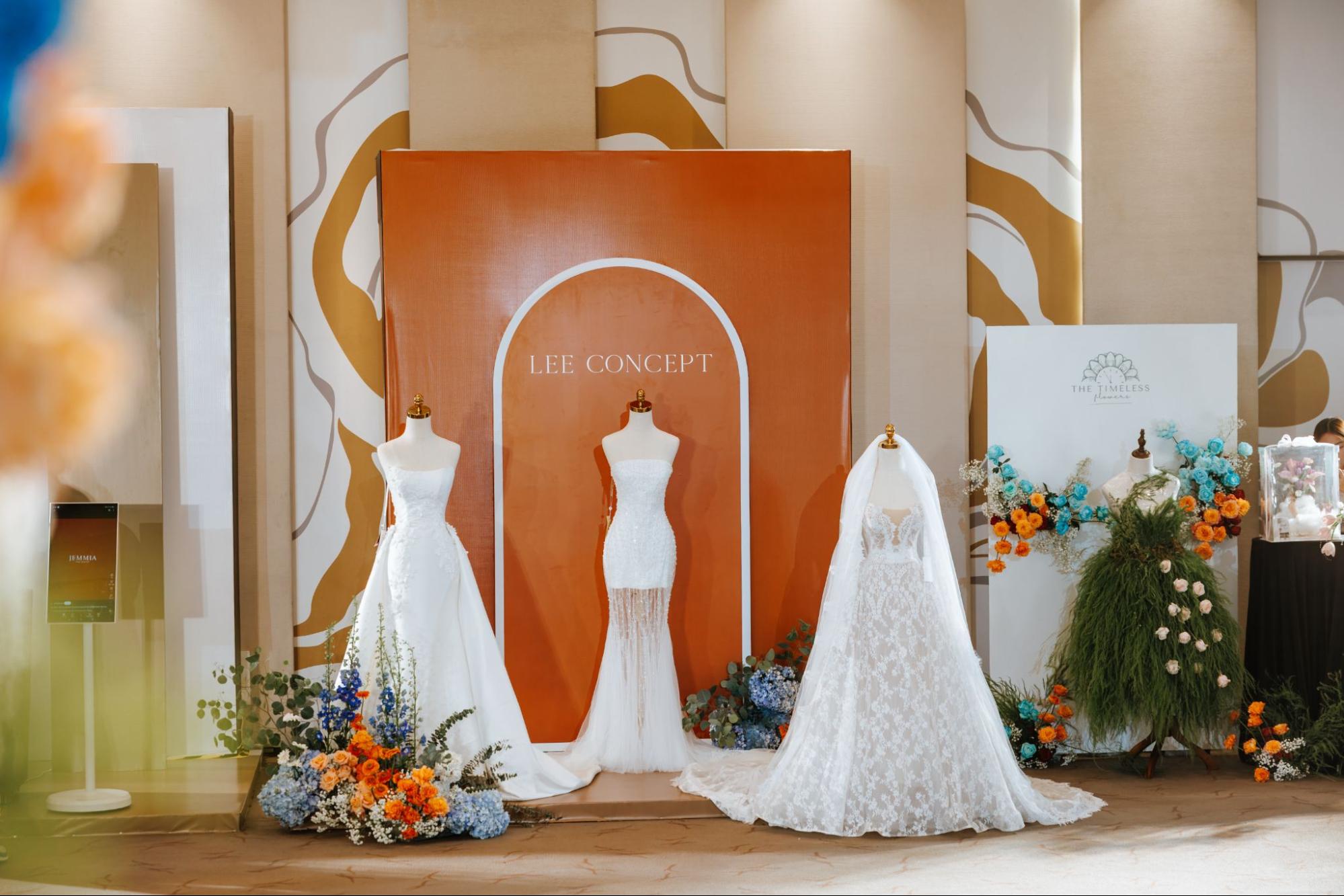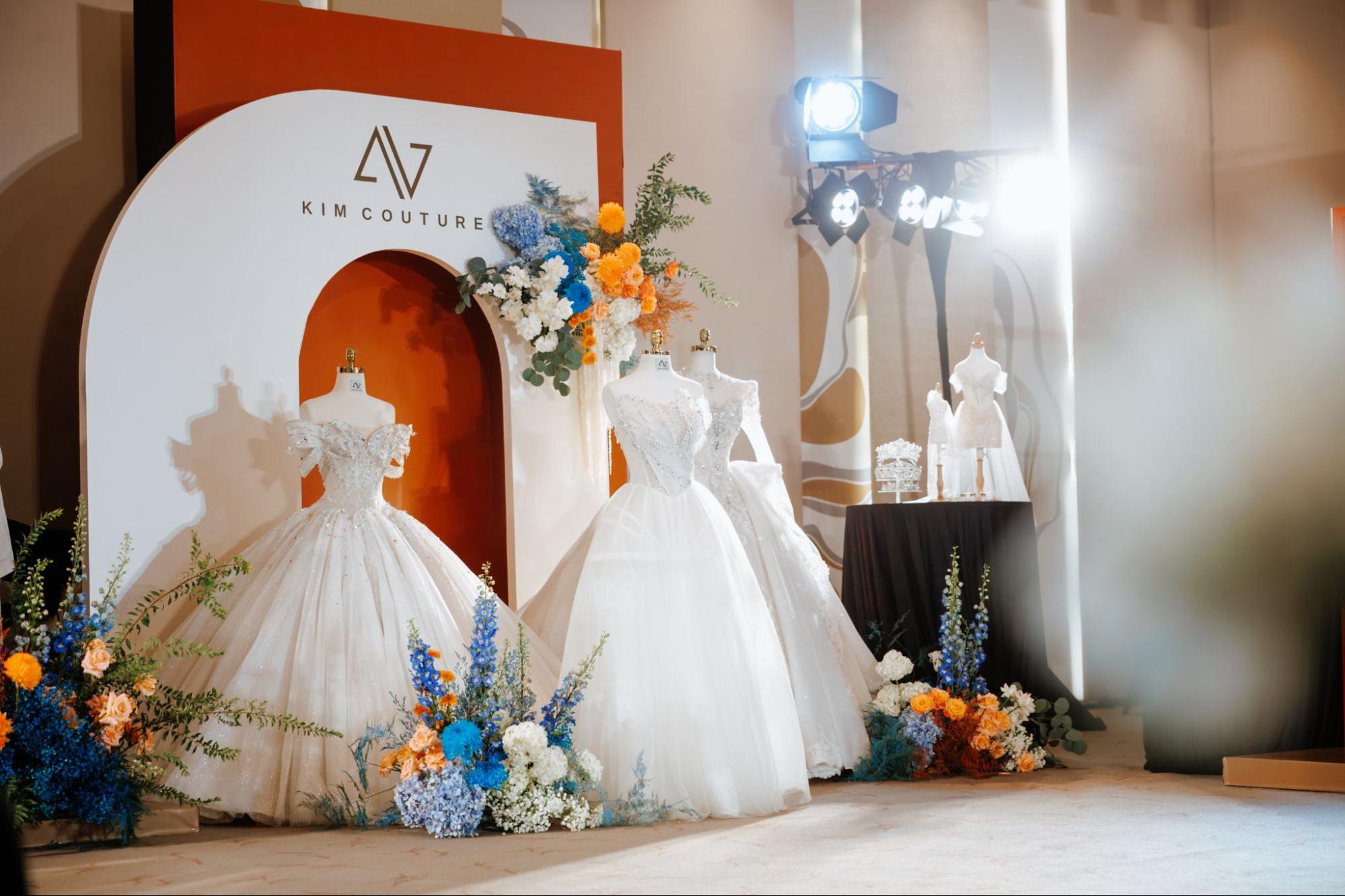 Bước vào không gian triển lãm, khách tham quan sẽ được chiêm ngưỡng sự hiện diện của hơn 20 thương hiệu đối tác trong ngành cưới. Hành trình cảm xúc tại Le Méridien Wedding Showcase 2025 bắt đầu từ những mẫu váy cưới mang đậm tinh thần thanh lịch và hiện đại của TRUONG THANH HAI Bridal, Lee Concept và Kim Couture. Cùng với đó là những bộ suit lịch lãm từ Kim Bespoke và The Suits House – lựa chọn hoàn hảo cho các chú rể trong ngày trọng đại.