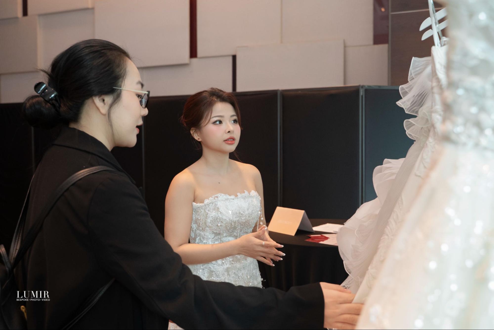 Không chỉ là tham quan và thưởng lãm, các khách mời đến với Le Méridien Wedding Showcase 2025 còn được đắm mình trong loạt hoạt động trải nghiệm đặc sắc xuyên suốt hai ngày sự kiện. Phòng thử váy cưới với những thiết kế sang trọng, tinh tế là điểm đến thu hút bậc nhất với các cô dâu tương lai, hoạt động được tài trợ bởi hai thương hiệu Kim Couture và Lee Concept.