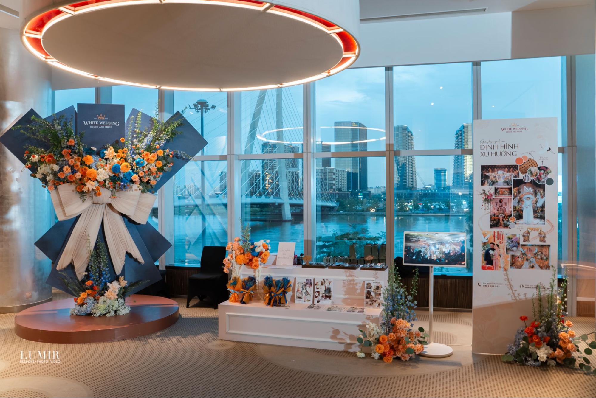 Tại tầng 1 của khách sạn Le Méridien – không gian chính của sự kiện, triển lãm cưới nổi bật với vẻ đẹp của những đóa hoa tươi thắm đến từ White Wedding – đơn vị đảm nhận vai trò trang trí, góp phần kiến tạo không gian trưng bày đầy cảm hứng. Đại diện cho những sắc màu và hình thái muôn vẻ của tình yêu, mỗi khu vực tại sự kiện là một “chương” trong cuốn nhật ký cưới, nơi các cặp đôi có thể tự do khám phá, cảm nhận và định hình phong cách cho ngày trọng đại theo cách riêng của mình.