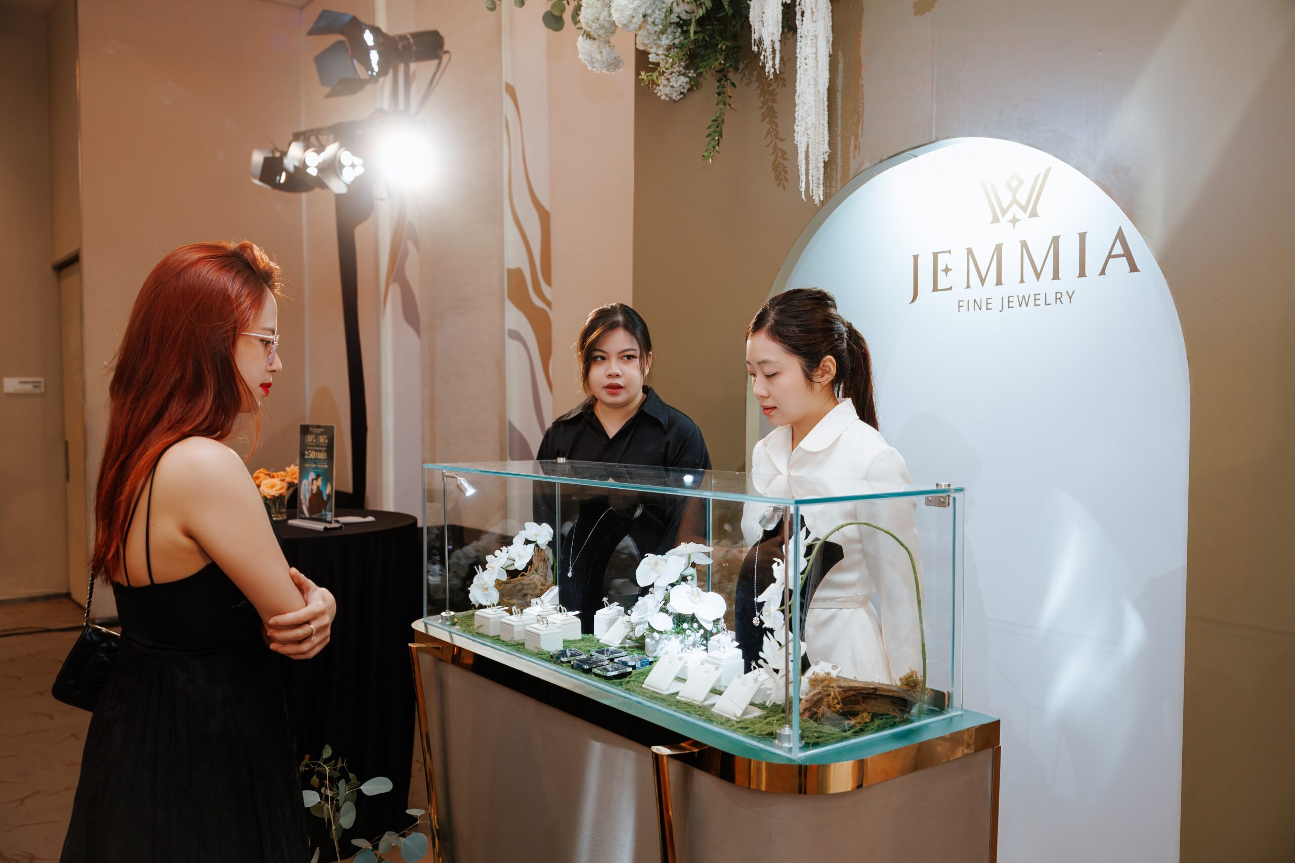 Không gian triển lãm càng trở nên lộng lẫy và cuốn hút nhờ những tuyệt tác trang sức. Hòa quyện với tinh thần thẩm mỹ sang trọng và đẳng cấp, Leman Jewelry chinh phục mọi ánh nhìn với những bộ sưu tập trang sức cưới bespoke sở hữu phong cách thiết kế vượt thời gian cùng kỹ nghệ chế tác đỉnh cao. Jemmia Fine Jewelry thu hút sự chú ý của các cặp đôi khi trưng bày những bộ sưu tập tinh tế – nơi tình yêu được lưu giữ trong từng góc cạnh hoàn mỹ.