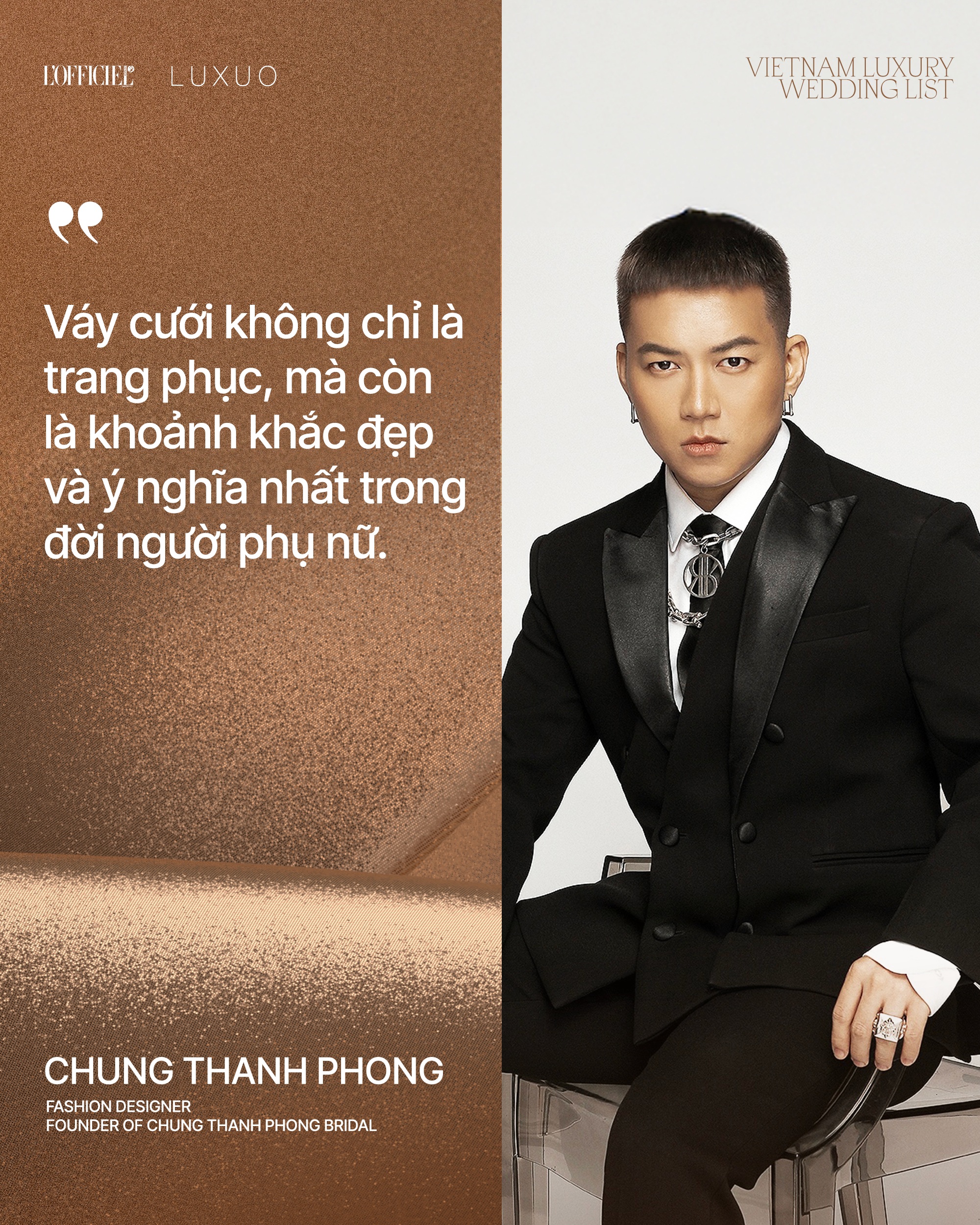 Với Chung Thanh Phong, thời trang cưới không đơn thuần là một lĩnh vực đòi hỏi kỹ thuật và tính thẩm mỹ cao, mà còn cần nhiều sự lắng nghe, thấu hiểu và đồng hành. Và quan trọng nhất, đây là nơi anh luôn dành sự nghiêm túc tuyệt đối cho từng khoảnh khắc, để có thể chạm đến cảm xúc chân thật của người mặc.