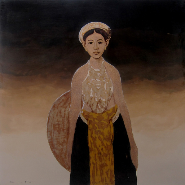 471 ← Previous Next → “Thôn nữ” Tác giả: Bùi Hữu Hùng. KT: 122 x 122 cm. Chất liệu: Sơn mài. (Ảnh:Greenpalmgallery.com)
