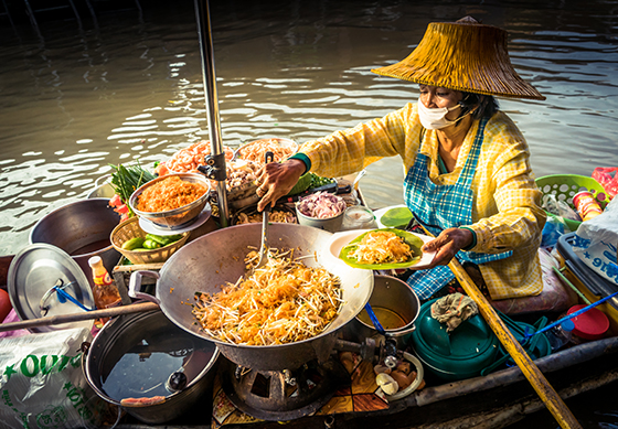 Amphawa,,Thailand.,October,25,,2015.,Pad,Thai,Served,From,A ← Previous Next → Amphawa, Thailand. October 25, 2015. Pad thai served from a boat in Amphawa for breakfast