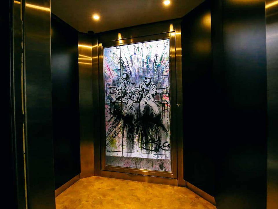 Original elevator graffiti art by Skott Marsi Ảnh KAUFMAN ORGANIZATION