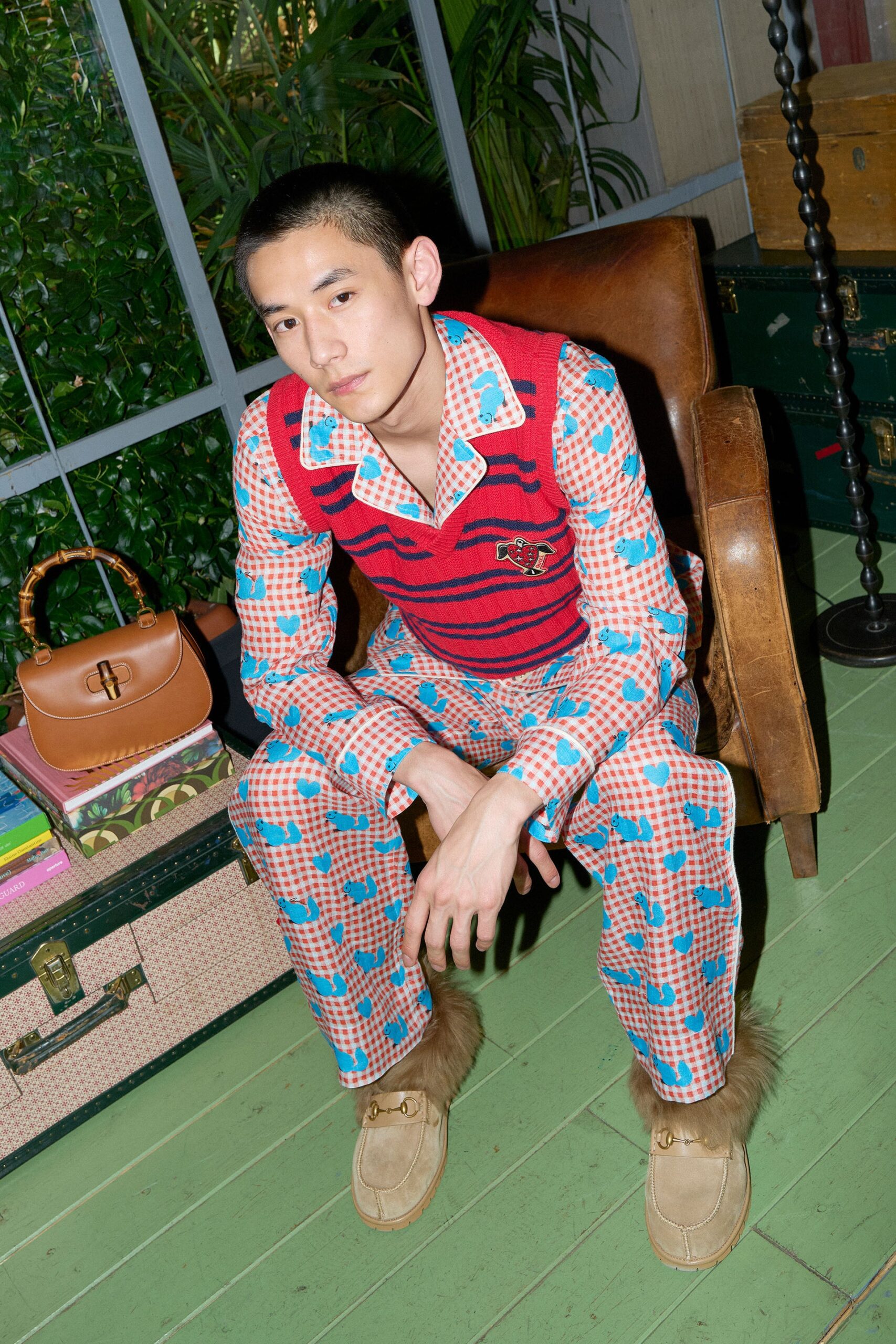Bộ sưu tập mang tên “HA HA HA” tập trung vào lượng người hâm mộ yêu thích phong cách của Harry Styles. Gucci coi trang phục nam là cơ hội phát triển cho thương hiệu. Nó được ví như vở kịch về “Harry” và “Alessandro” được thống trị bởi những phần cắt may theo kiểu Mr Fish của những năm 1970. Các loại vải từ Anh và Ý kết hợp với những bộ pyjama in hình kỳ quái với áo sơ mi cổ trại và áo phông in hoạ tiết “chú gấu gắt gỏng” – biểu tượng chính trong lần hợp tác này giữa Harry và Michele.