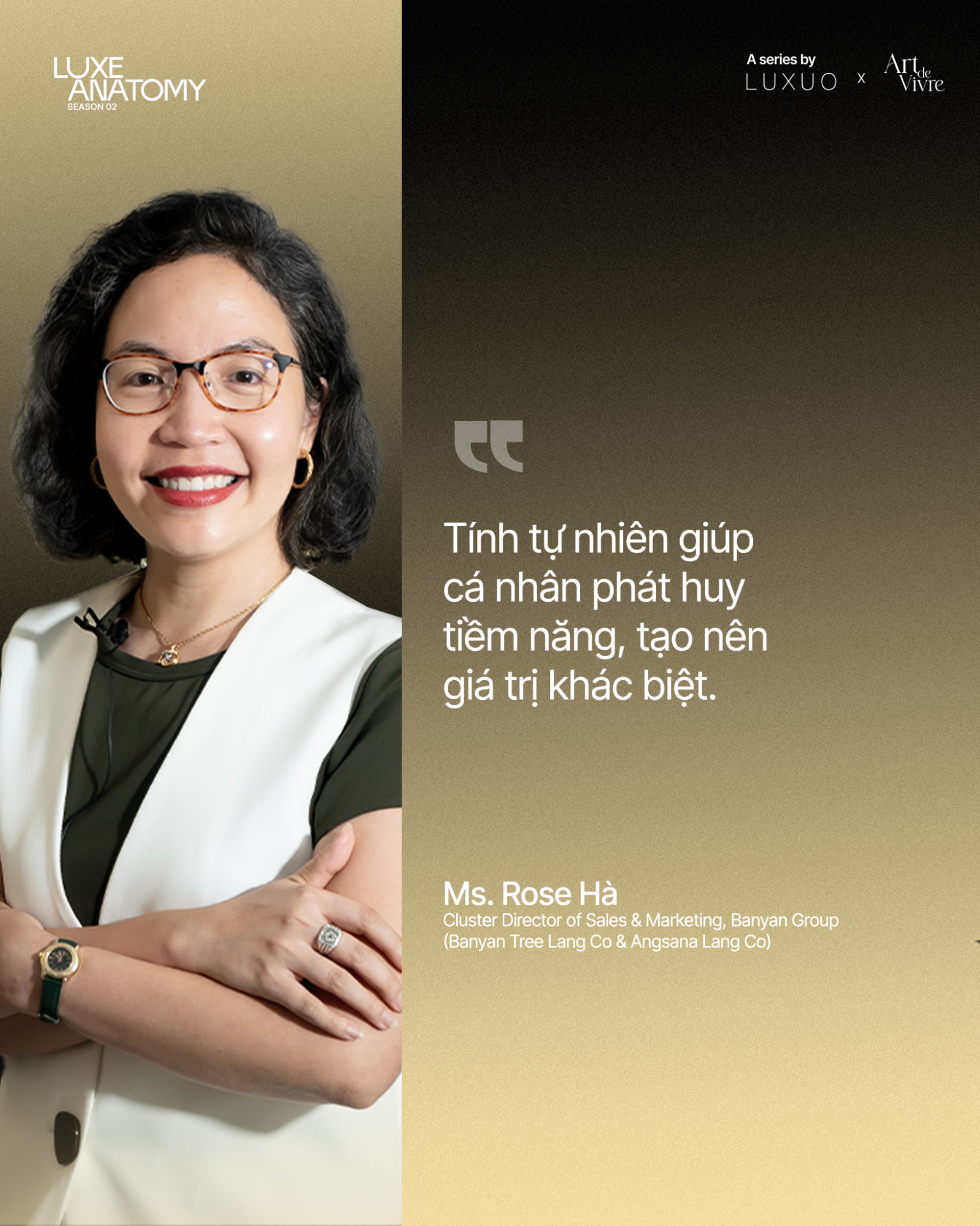 Trong tập thứ tư của Luxe Anatomy mùa 2, câu chuyện của chị Rose Hà – Cluster Director of Sales & Marketing tại Banyan Group – tiếp tục là bảo chứng cho tầm quan trọng của việc xây dựng giá trị văn hóa trong ngành khách sạn cao cấp. Với hơn một thập kỷ kinh nghiệm và nhiều vị trí quan trọng tại các khách sạn, khu nghỉ dưỡng danh tiếng, chị luôn kiên định xây dựng một môi trường làm việc lý tưởng, nơi sự chân thành và tính tự nhiên của mỗi cá nhân được tôn trọng.