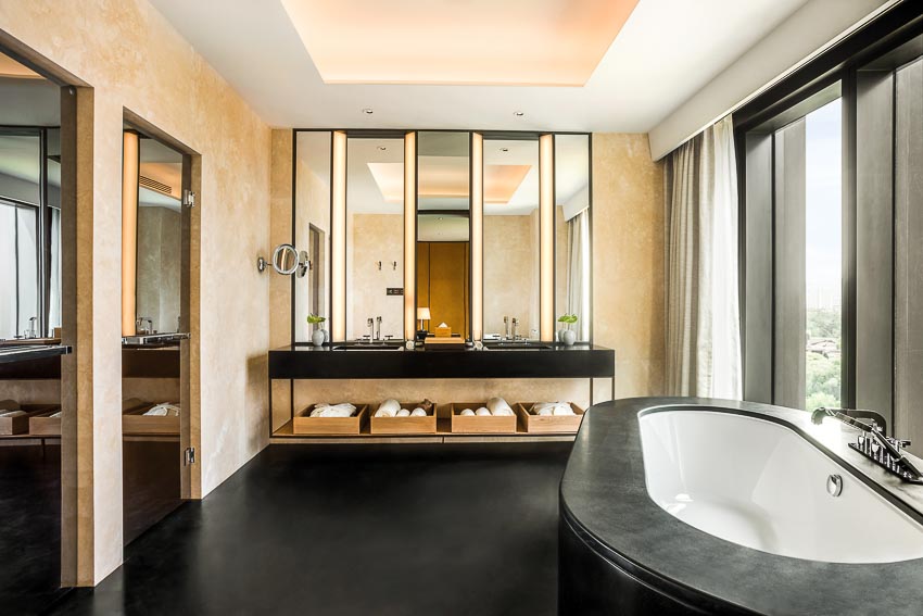 Bvlgari Bắc Kinh tiếp nối di sản với vị trí đắc địa bên sông và nằm trong khu đại sứ quán. Khách hàng sẽ khó lòng tin được mình đang ở Bắc Kinh đông đúc và chật chội nhờ những khu vườn ngoài trời được cắt tỉa cẩn thận đẹp mắt, lối đi dạo dọc sông tạo cảm giác bình yên và tách biệt với thành phố ồn ào.