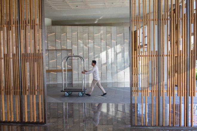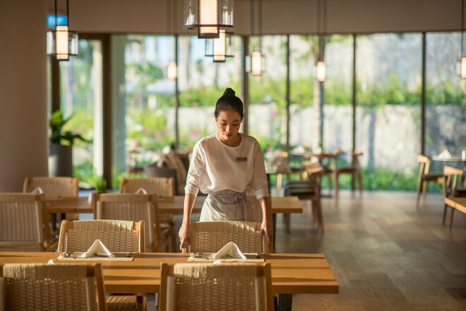 Thách thức lớn thứ ba là duy trì hoạt động kinh doanh thông qua việc giảm chi phí mà không làm ảnh hưởng đến dịch vụ cũng như sức khỏe hay sự an toàn của khách, nhân viên. Chúng tôi phải xem xét cẩn thận các khía cạnh để bố trí hợp lý. Ví dụ: khi tỷ lệ lưu trú không quá cao, chúng tôi sẽ đóng cửa hai tòa nhà để tiết kiệm năng lượng và nước. Nếu khách có đặt phòng tại đây, chúng tôi sẽ nâng cấp cho họ lên hạng phòng biệt thự. Đó cũng là cách chúng tôi bảo vệ môi trường.