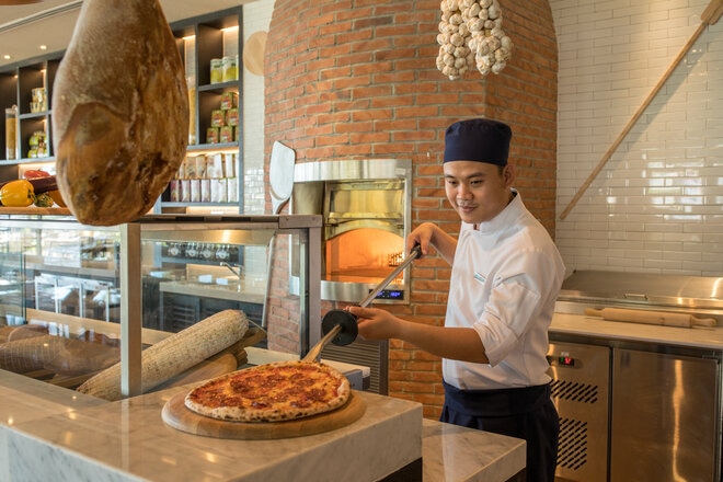 Vé trong ngày giá 150.000 VND/người sẽ bao gồm “Bữa sáng kết hợp” – món ăn từ Alma Food Court và cà phê/nước trái cây. Du khách có thể sử dụng hồ bơi vô cực lớn nhất của Alma và bãi biển Long Beach.