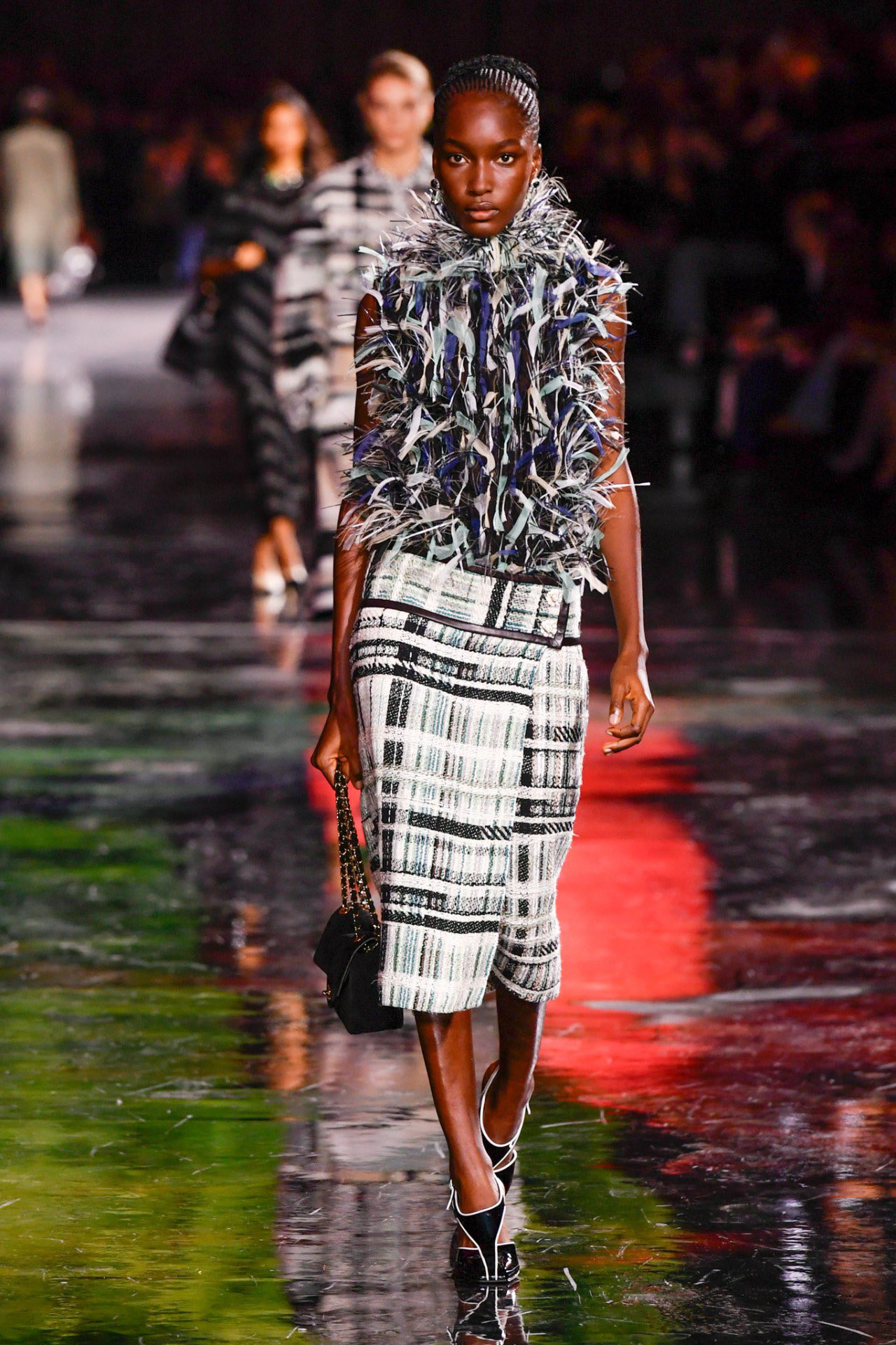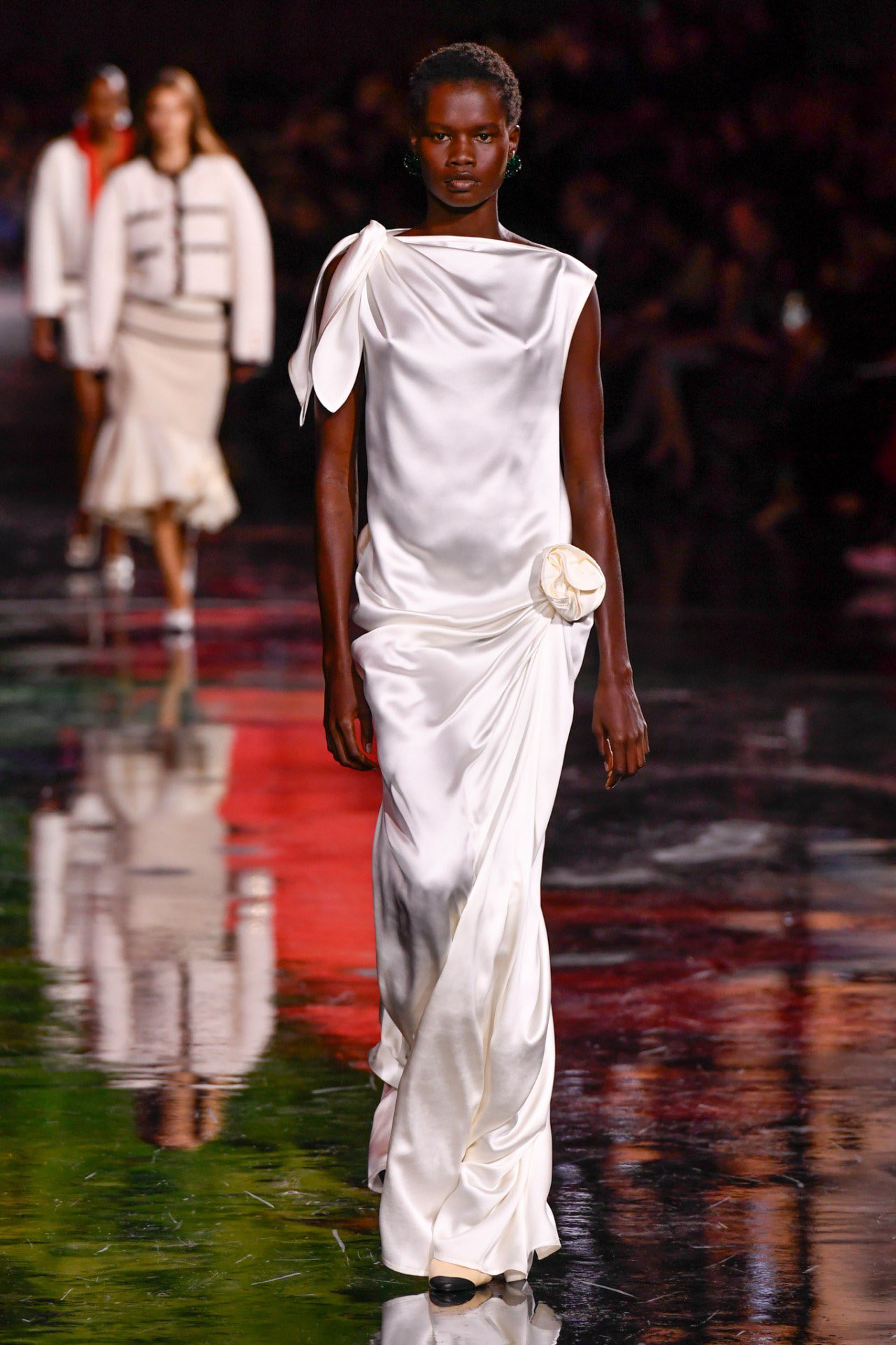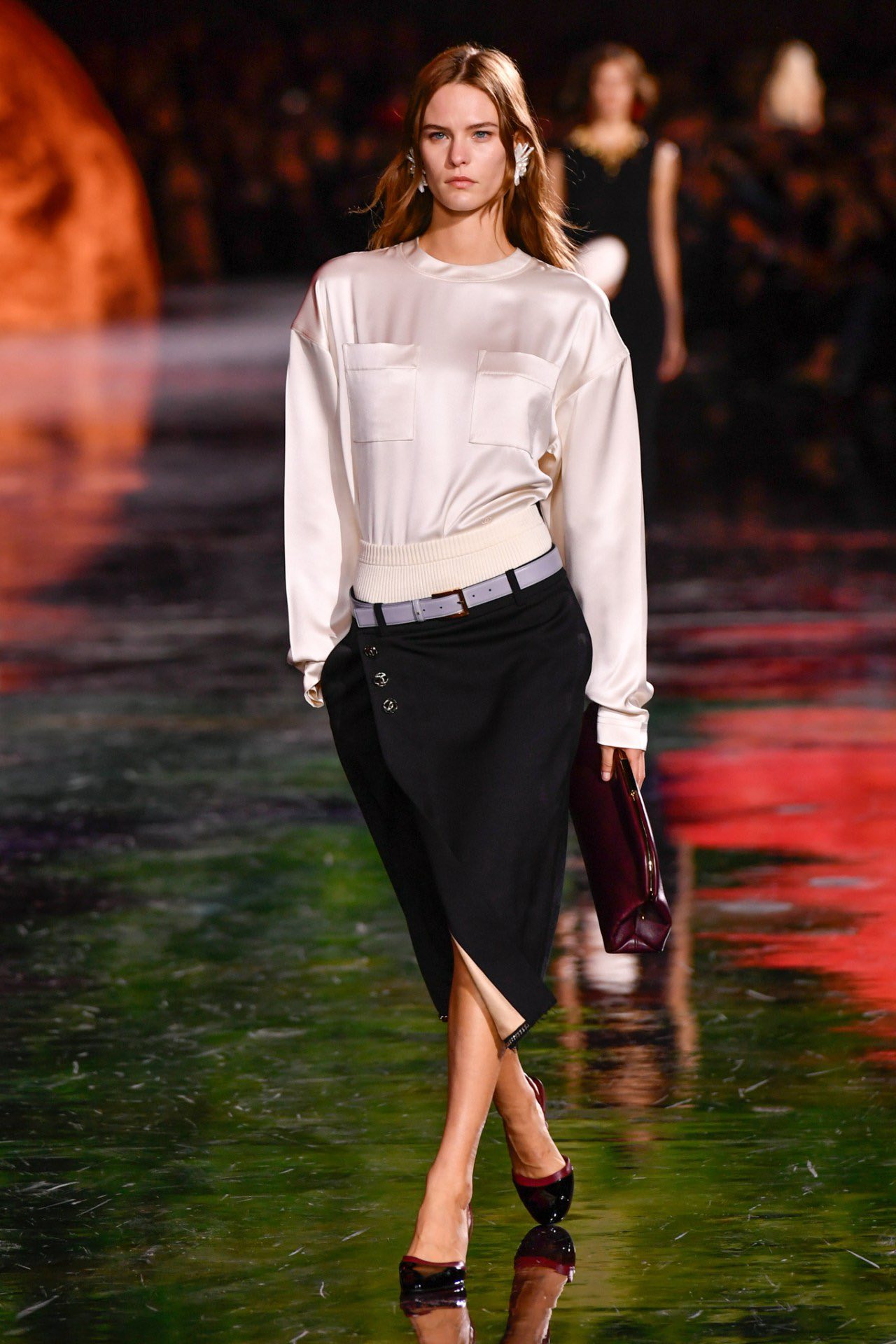 Matthieu Blazy và show diễn debut Chanel đã trở thành một bài học (cả về thời trang lẫn dàn dựng sân khấu). “Tôi muốn tạo nên điều gì đó vừa quen thuộc như một giấc mơ, vừa vượt thời gian. Tôi bị cuốn hút bởi vũ trụ của các vì sao — một chủ đề luôn gắn bó sâu sắc với Maison,” Blazy chia sẻ. “Tất cả chúng ta đều ngước nhìn cùng một bầu trời, và theo tôi, nó khơi dậy trong mỗi người những cảm xúc giống nhau.” Phần dàn dựng sân khấu ngoạn mục được thực hiện bởi đội ngũ Bureau Betak.
