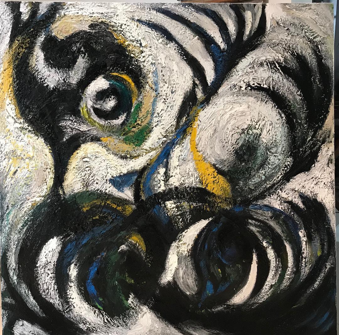 - Bản Nguyên 1 – sơn dầu trên bố – 100x100cm – 2020 – Phạm Văn Đức