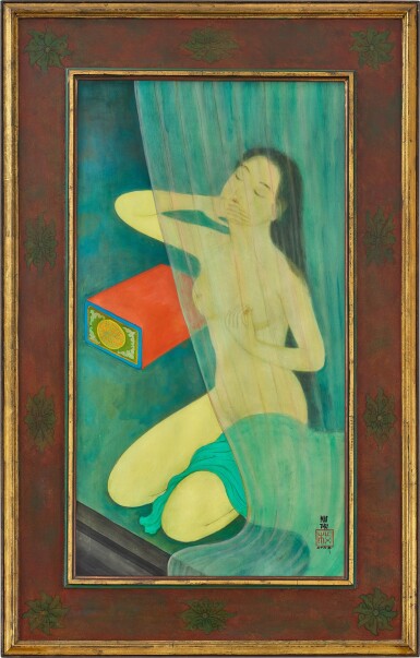 - Mai Trung Thứ, “Femme nue” (1976) – tạm dịch: Người phụ nữ khỏa thân, mực và bột màu trên lụa, 81,2 x 44 cm, giá ước tính từ 800.000 đến 1.800.000 HKD.