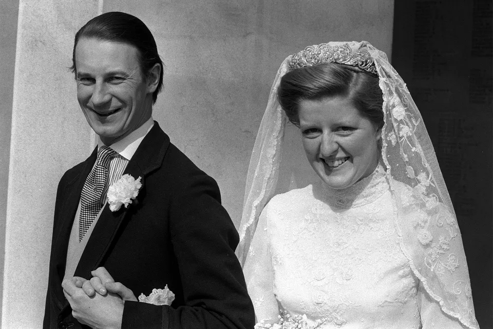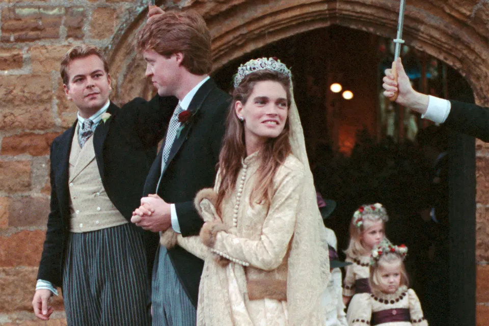 - Tử tước Althorp bên cạnh cô dâu Victoria Lockwood đội vương miện nhà Spencer.