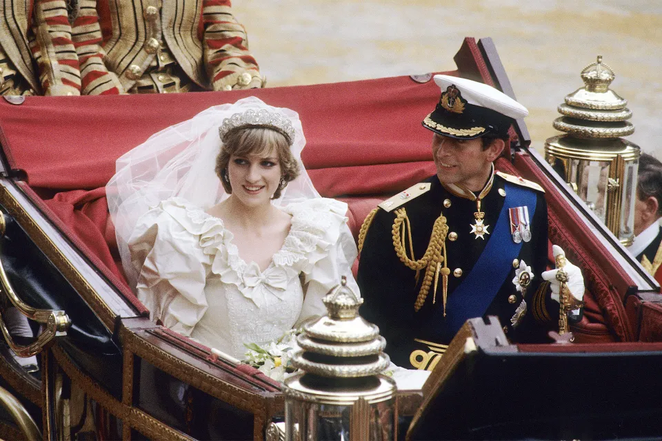 - Thái tử Charles và Diana. Công nương xứ Wales đội vương miện Spencer trong ngày cưới của họ.