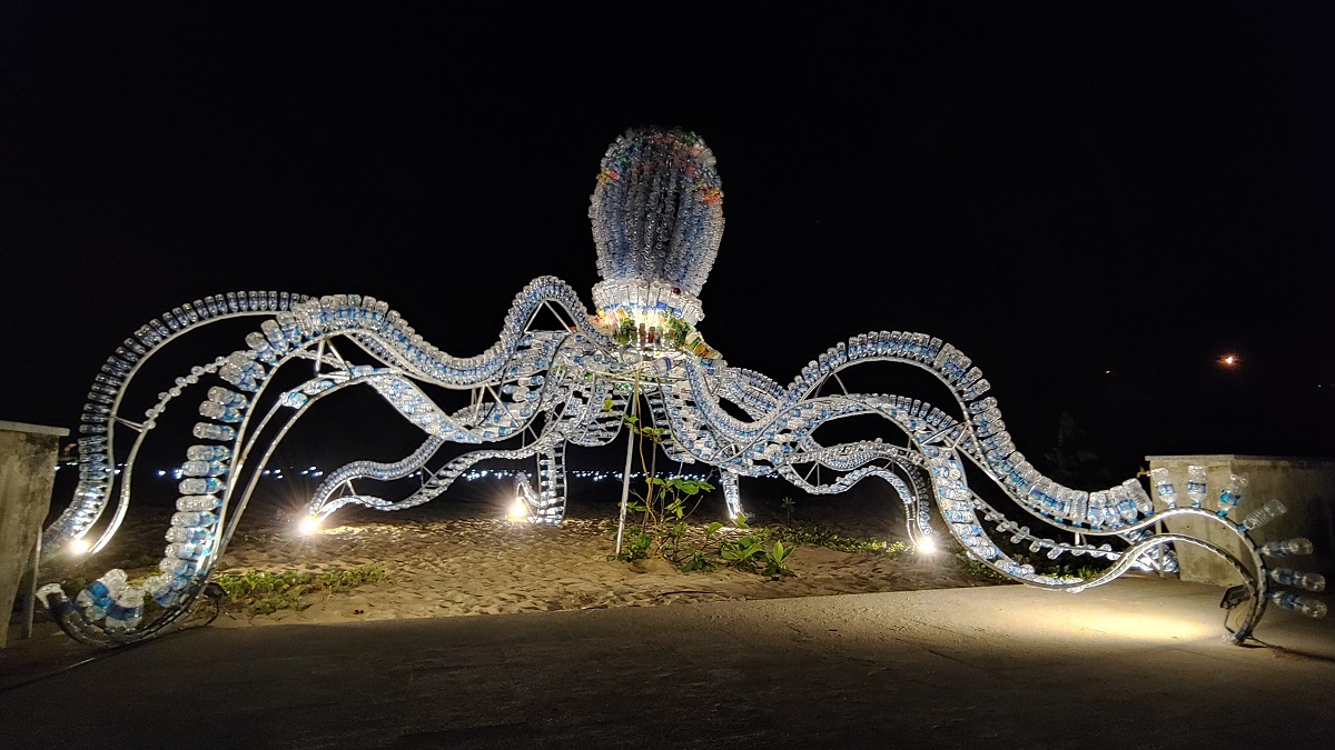 - Tác phẩm Bạch Tuộc Nhựa sắp đặt với 3000 chai nhựa của hoạ sỹ Vũ Xuân Đông trong triển lãm ECO-SUS, tại Trung tâm ICISE, Qui Nhơn