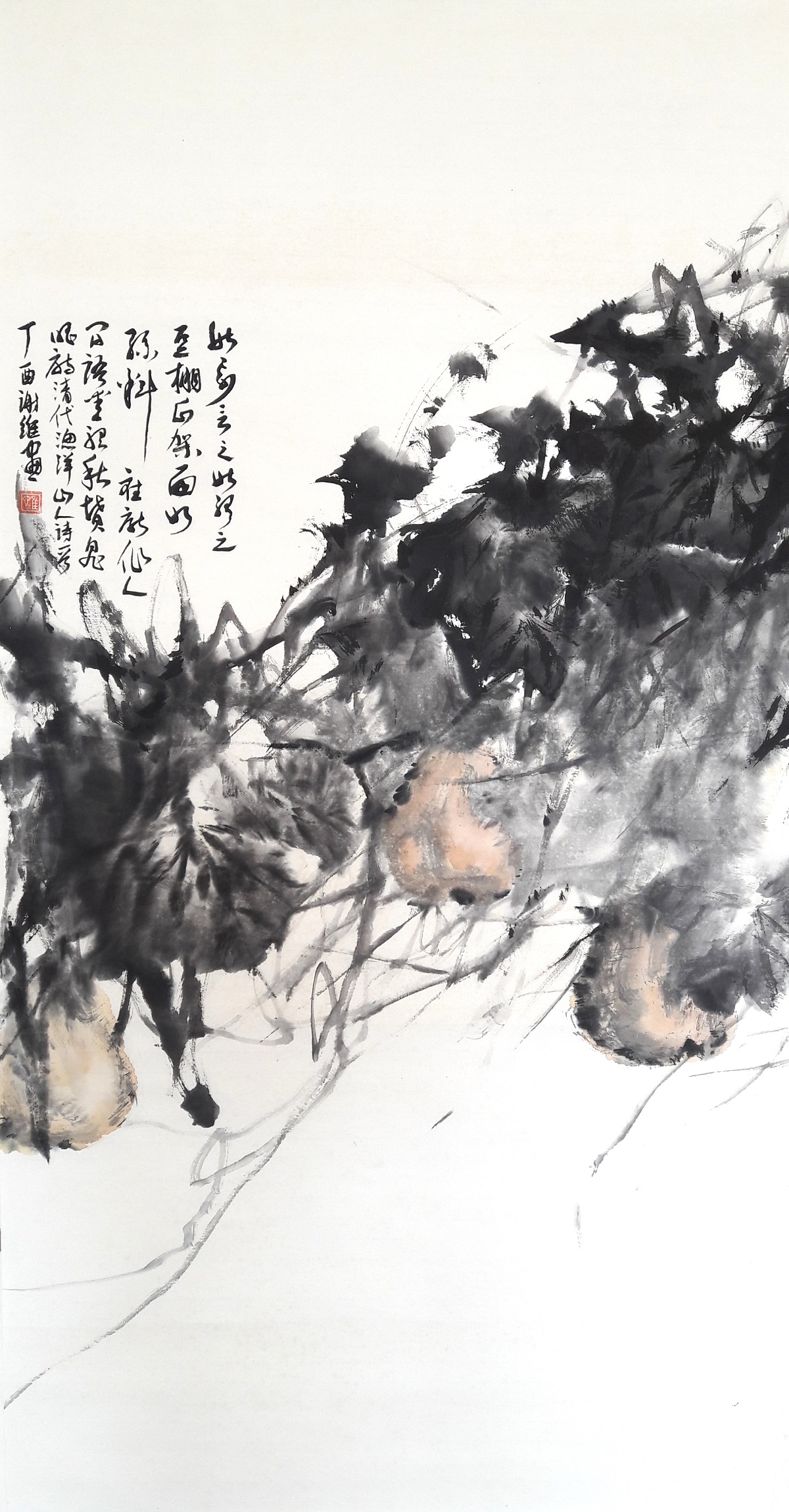 MƯA THU. Mực và màu trên giấy. 69 – 137 cm.