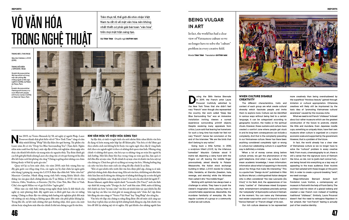 Như vậy, xuyên suốt Art Republik Vietnam #3, chúng tôi lần lượt khám phá những góc nhìn trẻ, tươi mới nhưng sâu sắc của người trong cuộc, từ triết lý tinh giản tối đa của nữ nghệ sĩ điêu khắc Lập Phương, sự lặng lẽ nhưng ẩn sâu bên trong là ánh sáng bền bỉ của Lý Trần Quỳnh Giang, những suy tư thú vị về nghệ thuật đương đại của thầy trò Tuấn Andrew Nguyễn và Wowy đến quan điểm chánh niệm hay vô văn hóa trong nghệ thuật,… Đồng thời, ấn phẩm cũng giới thiệu những triển lãm ấn tượng trong năm 2021 đã góp phần làm nên một bức tranh mosaic đa sắc màu.