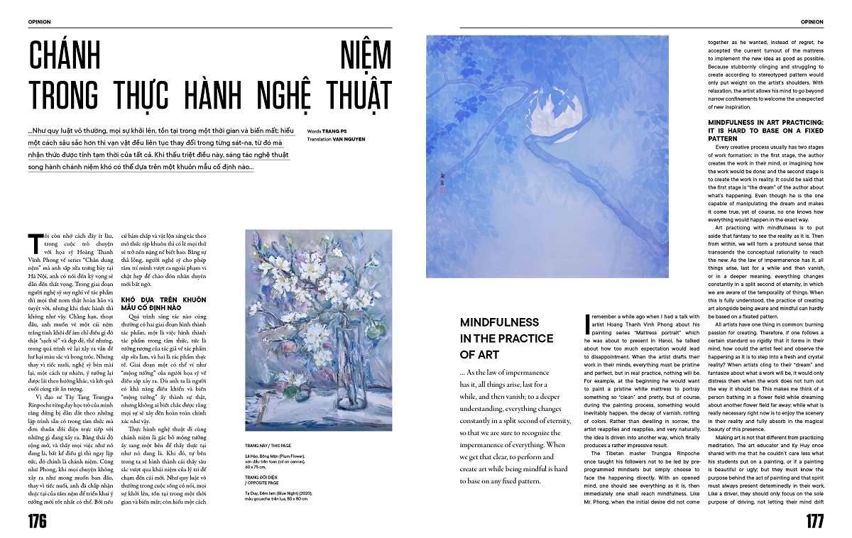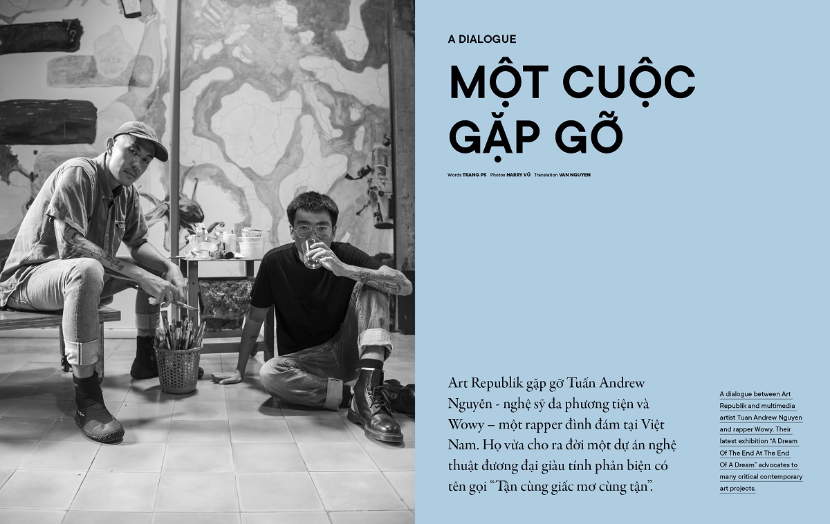 Tại sự kiện ra mắt lần này, chúng tôi mang đến một trong bốn phiên bản trang bìa đặc biệt với sự xuất hiện của thầy trò nghệ sĩ Tuấn Andrew Nguyễn và Wowy. Cùng tuổi Thìn, cuộc gặp gỡ giữa Tuấn Andrew Nguyễn – Wowy như mối duyên tiền định. Trong suốt 15 năm qua, họ đã kết hợp ăn ý với nhau thông qua nhiều dự án như triển lãm Quiet Shiny Words (2008) tại Galerie Quỳnh, MV Kẻ Tội Đồ, video My Ailing Beliefs Can Cure Your Wretched Desires,… Và tháng 4 năm 2021 này, họ đã trở lại trong một triển lãm nổi tiếng mang tên “A Dream Of The End At The End Of A Dream” tại Galerie Quỳnh, thể hiện những trăn trở và nghiên cứu sâu sắc của thầy trò về môi trường trên trái đất. Xuất hiện tại đêm tiệc, Wowy và Tuấn Andrew Nguyễn sẽ có những chia sẻ về quá trình sáng tạo, nghệ thuật đương đại cũng như những dự án mà họ sẽ cùng nhau triển khai trong thời gian tới.