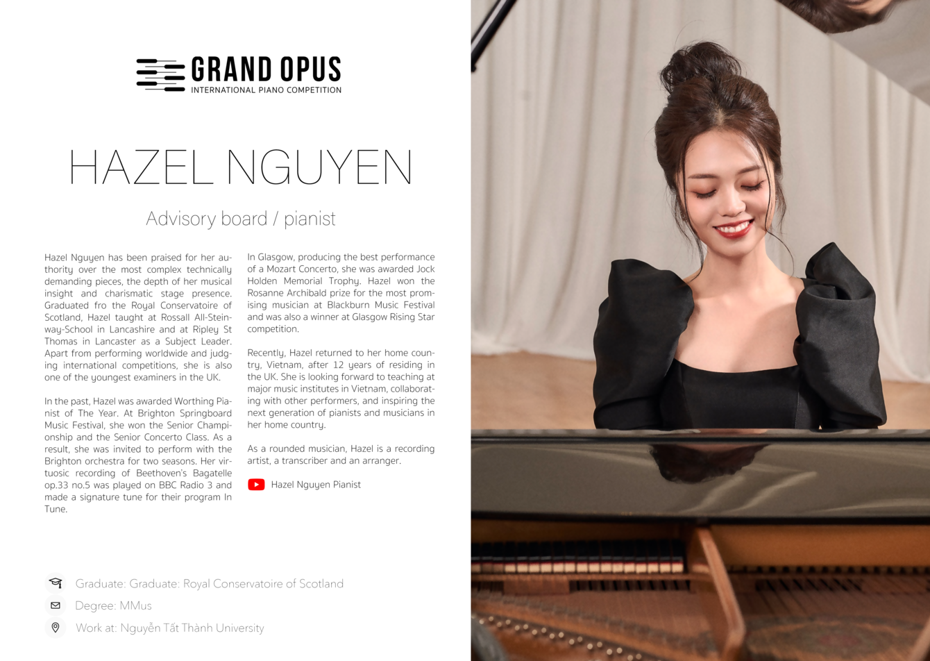 Cũng theo tinh thần trên, lần đầu tiên, Impressivo khởi động cuộc thi Grand Opus Piano Competition từ tháng 06/2023 – tháng 08/2023. Cuộc thi không chỉ trở thành sân chơi dành cho các thí sinh Không Chuyên và Chuyên Nghiệp được thể hiện tài năng, mà còn là nơi để các em có thể giao lưu, học hỏi và cọ sát với các thí sinh trên phạm vi toàn cầu. Ngoài ra, các thí sinh đăng ký tham gia còn có cơ hội được trải nghiệm các thương hiệu piano cao cấp nhất như Steingraeber, Mason & Hamlin, Bluthner,… Impressivo mong rằng, cuộc thi sẽ góp phần đưa những tài năng trẻ tiếp cận gần hơn với các tiêu chuẩn của nền âm nhạc hàn lâm.