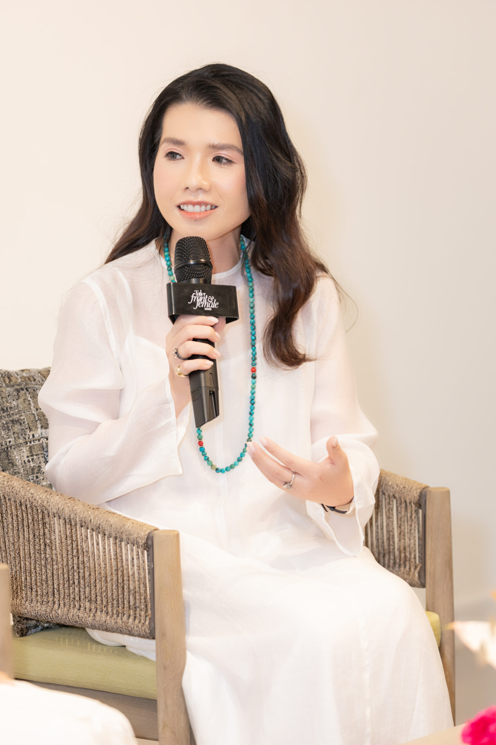 Sau nghi thức ký kết, chương trình bước vào phần chính là buổi đối thoại SHE Speaks 2025, với chủ đề “Women Advancing Women – Từ nguồn cội bền vững đến khát vọng cộng đồng”. Trước khi bắt đầu phiên đối thoại, Bà Nikita Chu – Chủ biên Tatler Vietnam, đã có những chia sẻ về Front & Female và kỳ vọng phía trước.