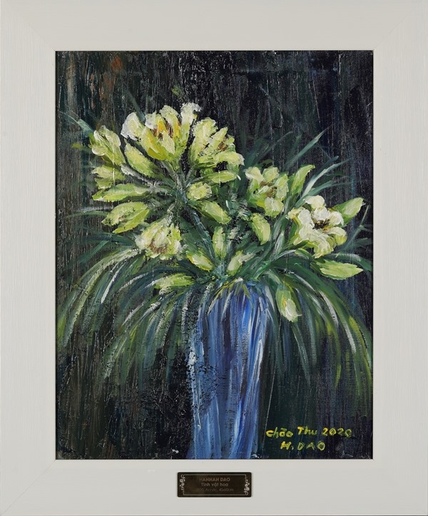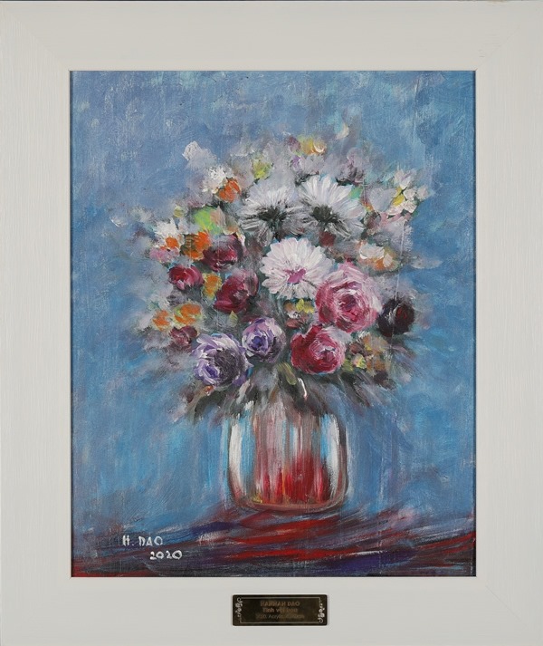 - Tên tác phẩm: Tĩnh vật Tác giả: Hannah Đào Chất liệu: Acrylic Kích thước: 40cmx60cm Năm sáng tác: 2020 Tranh đã có khung Giá khởi điểm: 5 triệu