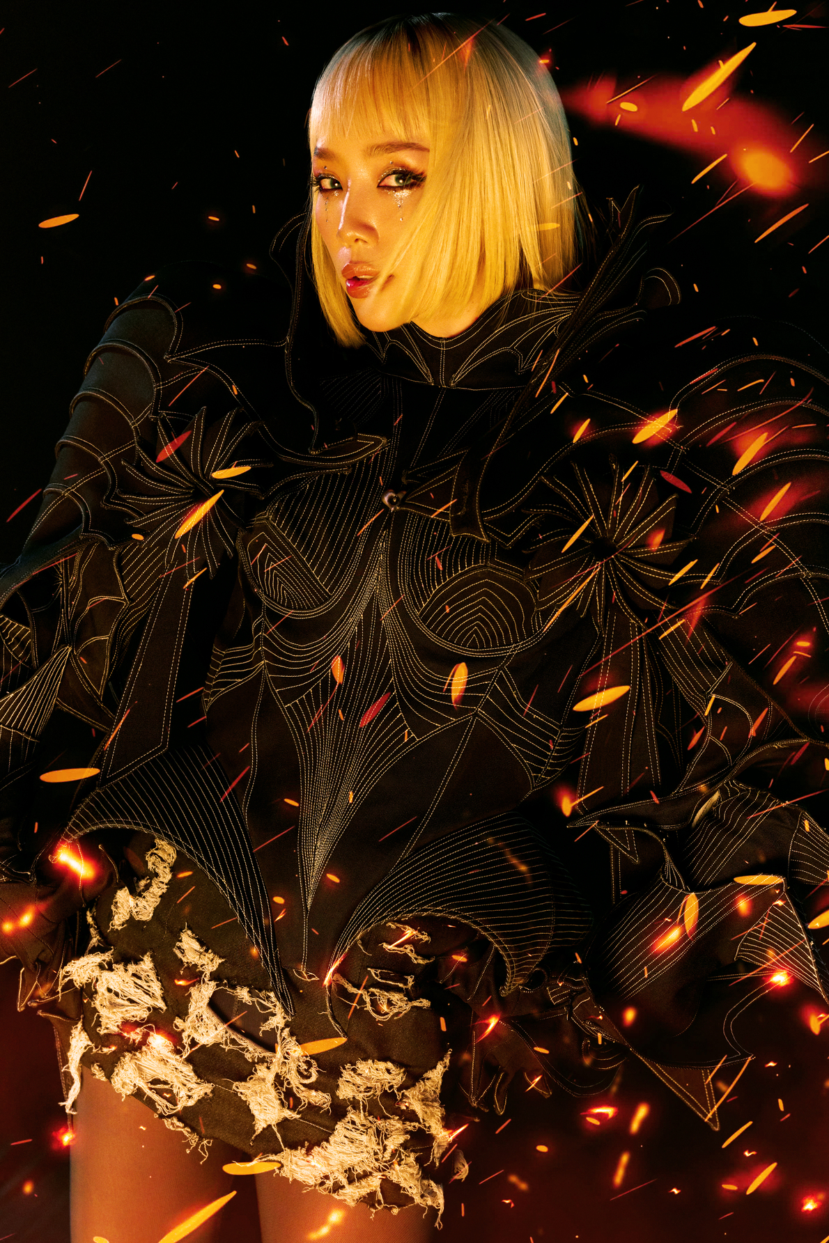Toc Tien LOL – Luxuo vietnam 1 ← Previous Next → Tạo hình của Tóc Tiên khi thể hiện ca khúc chủ đề song ngữ Việt–Anh có tựa đề “Welcome to Noxus – Bite Marks” cho giải đấu League of Legends Championship Pacific