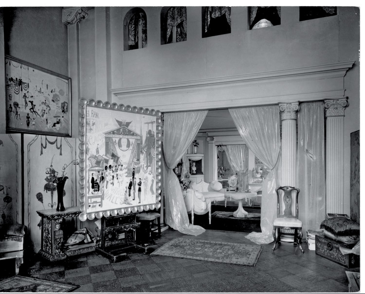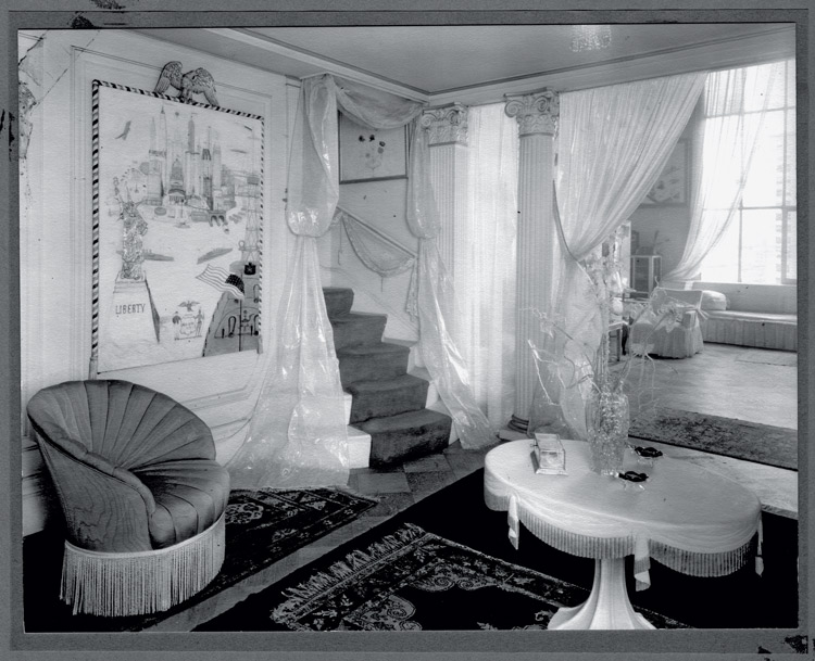 - Xưởng vẽ của Stettheimer, có rèm bằng giấy bóng kính, khung và đồ nội thất do bà thiết kế. Hình ảnh thuộc tài liệu về Florine Stettheimer, Rare Book and Manuscript Library, Đại Học Columbia ở New York, Mỹ. Quà tặng của bà Ettie Stettheimer (em gái của nữ nghệ sỹ). Nguồn: designweek.co.uk