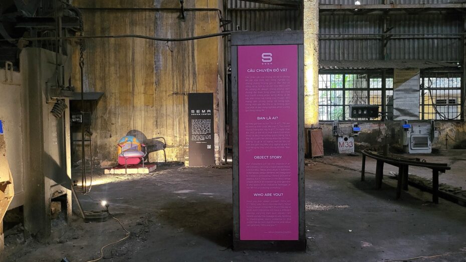 Lấy cảm hứng từ tác phẩm “Tính tương đối” của nghệ sĩ thị giác M. C. Escher, đơn vị thiết kế TOOB Studio muốn đem lại cảm giác vô tận khi khám phá không gian bằng cách di chuyển trên những cốt sàn có cao độ khác nhau. Qua từng nấc thang, không gian sẽ khơi gợi cảm xúc ở từng góc nhìn. Những tia sáng tự nhiên len lỏi qua lớp mái làm nổi bật bề mặt thời gian của những cỗ máy đồ sộ và không gian rộng lớn này đã từng là chốn neo đậu của những cấu trúc vận hành hàng đầu cả nước.
