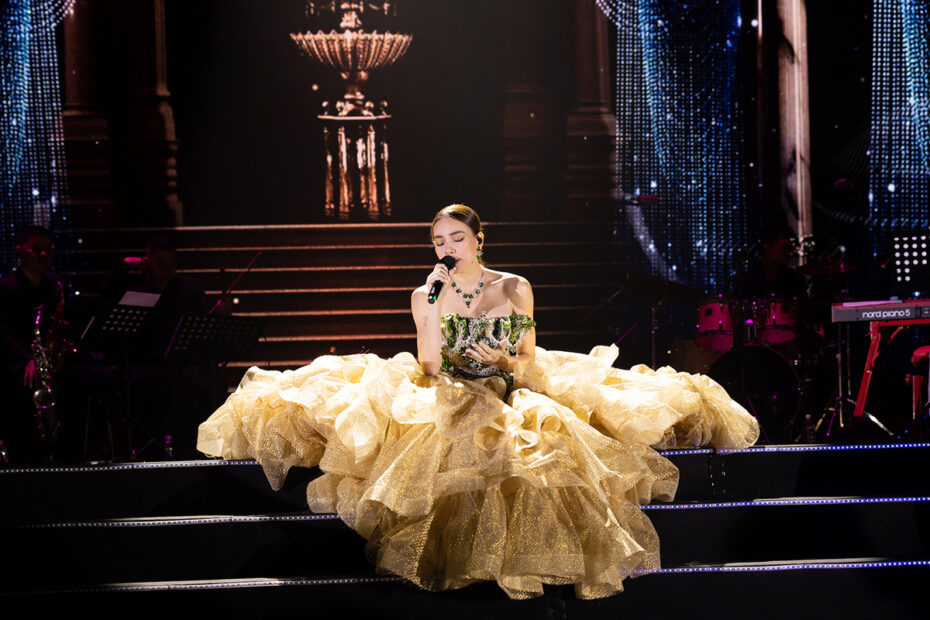 Hồ Ngọc Hà – ca sĩ được chờ đợi nhất tại đêm nhạc đã không làm khán giả thất vọng khi xuất hiện ở phần sau của chương trình. Cô mặc chiếc váy cổ tích, phần tà chất liệu voan, thiết kế xếp tầng tạo sự bay bổng, nữ tính. Như thông tin đã tiết lộ từ trước khi đêm nhạc diễn ra, nữ ca sĩ sẽ hát tặng khán giả loạt hit của Love songs – series âm nhạc từng tạo nên “thương hiệu” Hồ Ngọc Hà qua bốn mùa tổ chức. Lần này, các nhạc phẩm được khoác áo mới bằng bản phối sang trọng, trong đó điểm nhấn là loạt liên khúc gắn với tên tuổi của cô.