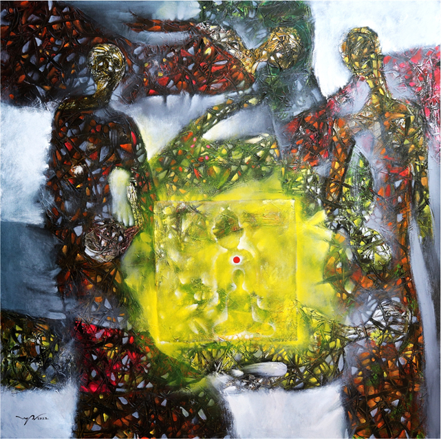 Huy ẩn tàng những thân phận trong một bối cảnh xen lẫn giữa trừu tượng và biểu hiện mà nổi bật trong đó là cách dùng màu vừa gân guốc mạnh mẽ vừa như làn sương mờ ảo. Tính mạnh và nhẹ, nóng và lạnh được đan cài vào nhau một cách nhuần nhuyễn để mang tới không chỉ một cá thể mà là một tập thể số phận cũng đang được đan cài và có tính tương thuộc lẫn nhau. Đó không chỉ là con người, mà còn là những con vật, và ta gọi chung là chúng sinh.