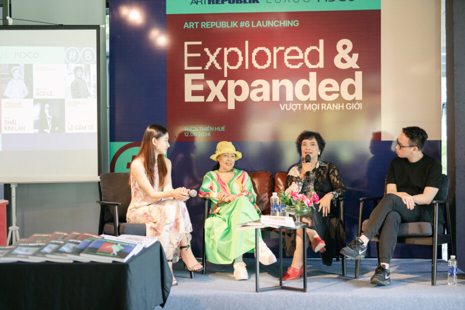Nằm trong khuôn khổ sự kiện, buổi Art Talk “Vượt mọi ranh giới –: Explored & Expanded” có sự góp mặt của ba vị diễn giả, gồm: GS. TS. Thái Kim Lan, chủ nhân của Lan Viên Cố Tích – Bảo tàng Gốm cổ Sông Hương; cô Lê Cẩm Tế, Nhà sáng lập Không gian Lưu niệm Lê Bá Đảng; và anh Ace Lê, Giám tuyển và Tổng biên tập Art Republik Vietnam. Nhìn lại hành trình chông gai mà mỗi vị diễn giả đã trải qua để sáng lập nên các tổ chức, không gian nghệ thuật và lưu dấu di sản cho nền nghệ thuật Việt Nam, ba diễn giả đã trở thành minh chứng sống cho chủ đề của ấn phẩm Art Republik #6: “Vượt mọi ranh giới – Explored & Expanded”.