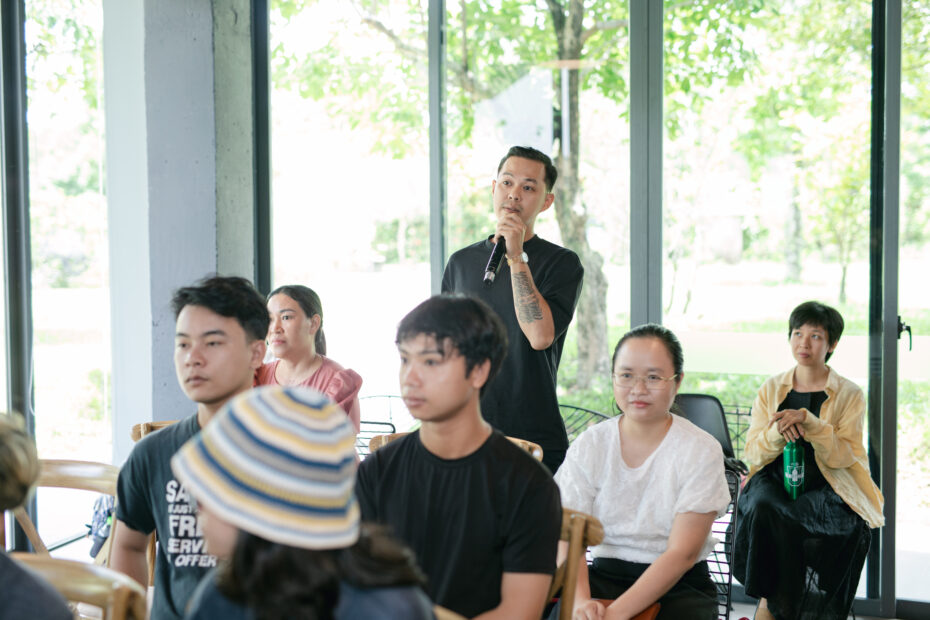 Trong buổi Art Talk, những người yêu nghệ thuật đã cùng nhau đàm đạo về các lớp lang rào cản cũng như động lực vượt qua mọi khó khăn trong việc vận hành tổ chức nghệ thuật. Từ góc độ của GS. TS. Thái Kim Lan, cô mang đến góc nhìn học thuật của một cựu giảng viên chuyên ngành Triết học tại Munich, Đức, thế nhưng vẫn luôn lắng nghe tiếng gọi mãnh liệt của Tổ quốc. Sau hơn ba mươi năm lưu học và công tác tại Đức, cô trở về thành phố Huế để sáng lập Bảo tàng Gốm cổ Sông Hương, nơi trưng bày hơn 5.000 mẫu vật trục vớt từ dòng sông Hương, trong đó có nhiều cổ vật quý thuộc thời đại Tiền-Sa Huỳnh.