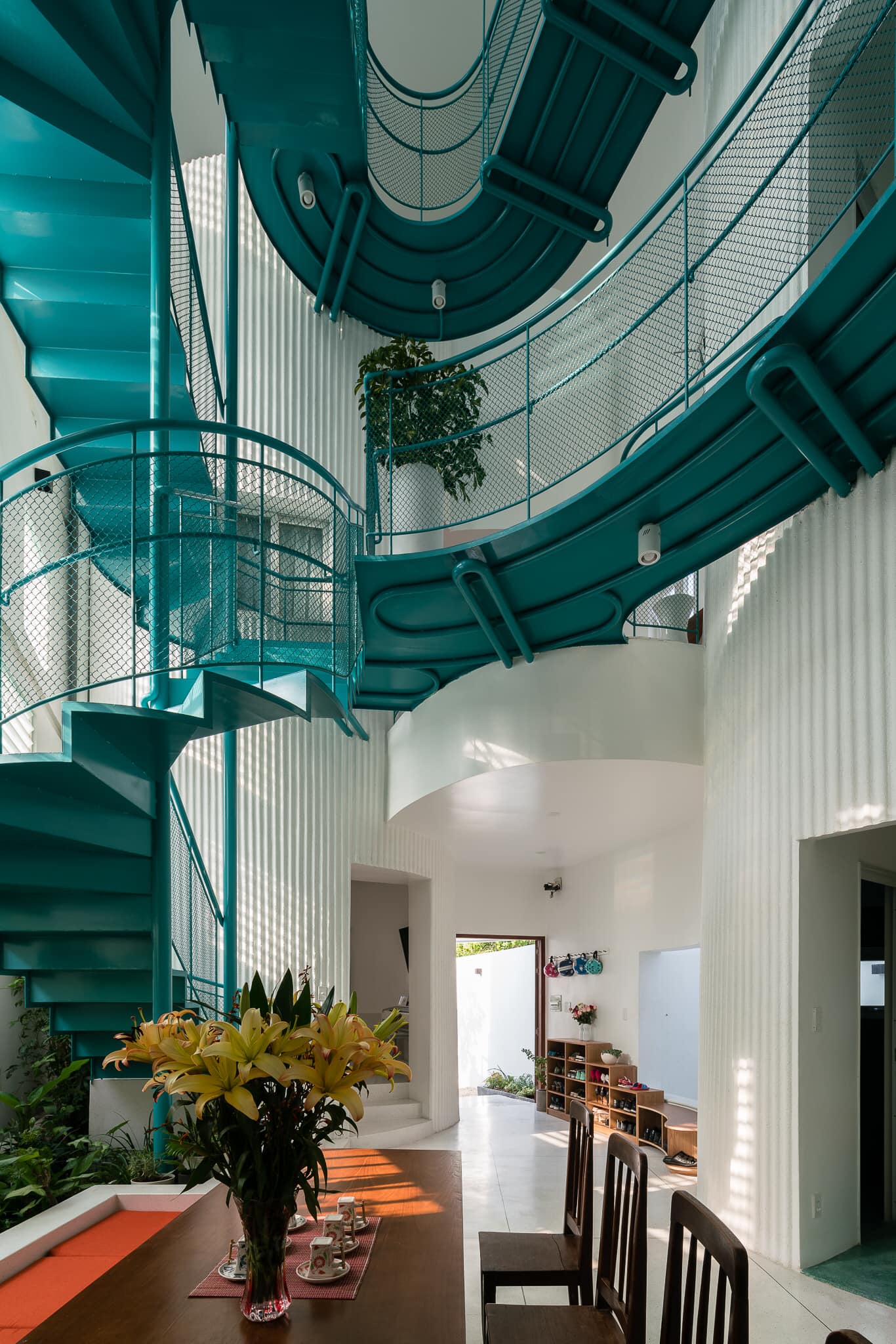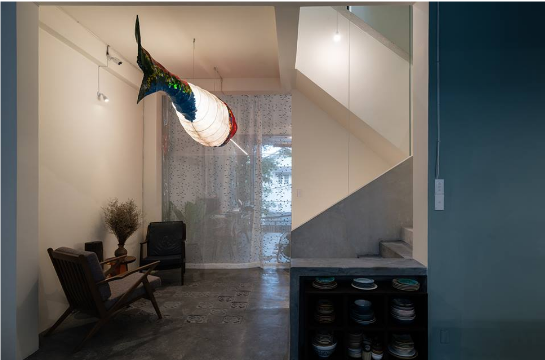 Thực tế là, chúng tôi yêu mến tất cả mọi hình khối, và hào hứng trải nghiệm chúng cho hầu hết các công trình của mình. Nhưng nếu phải kể tên một hình ảnh lặp đi lặp lại, đó là hình thức Con Cá. Con Cá? Đúng là nghe thật chẳng mấy liên quan đến kiến trúc! Nhưng bằng cách này hay cách khác, nó luôn tìm được “đường trở lại” trong công trình của tho.A… ở trong dự án Hẻm, nó hoá thân thành biểu tượng đánh dấu lối vào… với the Fish, nó biến thành những cây cột khổng lồ… đến Kum Kent House, Con Cá là chiếc lồng đèn khổng lồ “bơi” trong không gian…