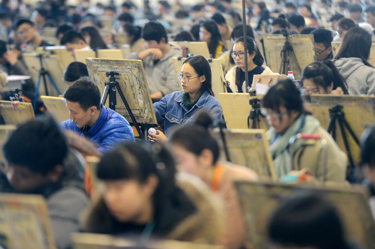 JINAN, CHINA – FEBRUARY 16: (CHINA OUT) Nearly 7,000 students take part in the college entrance exam for art at Shungeng International Convention and Exhibition Center on February 16, 2016 in Jinan, China. About 900,000 applicants take the national college entrance exam for art in China every year. (Photo by VCG/VCG via Getty Images)