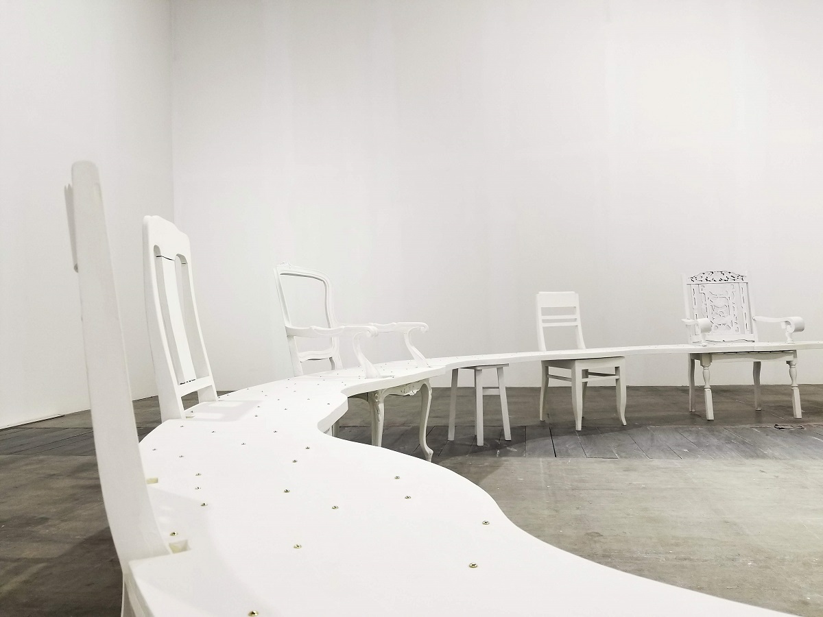 Tôi được đào tạo về mảng hội họa, cụ thể là chất liệu sơn mài, nhưng đa phần các tác phẩm sau này của tôi lại thiên về hình khối trong không gian. Tôi quan tâm và sử dụng cả ba loại hình này trong thực hành của mình và chúng có liên hệ mật thiết với nhau. Tưởng tượng tôi có một cái tủ – đó là tác phẩm điêu khắc, tôi khảm trai lên – lại liên quan đến hội họa, và sau đó tôi quyết định đặt ở đâu và như thế nào – ở đây là loại hình sắp đặt.