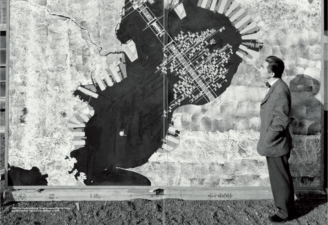 Kenzo Tange đang thuyết minh về phương án quy hoạch vịnh Tokyo vào năm 1960