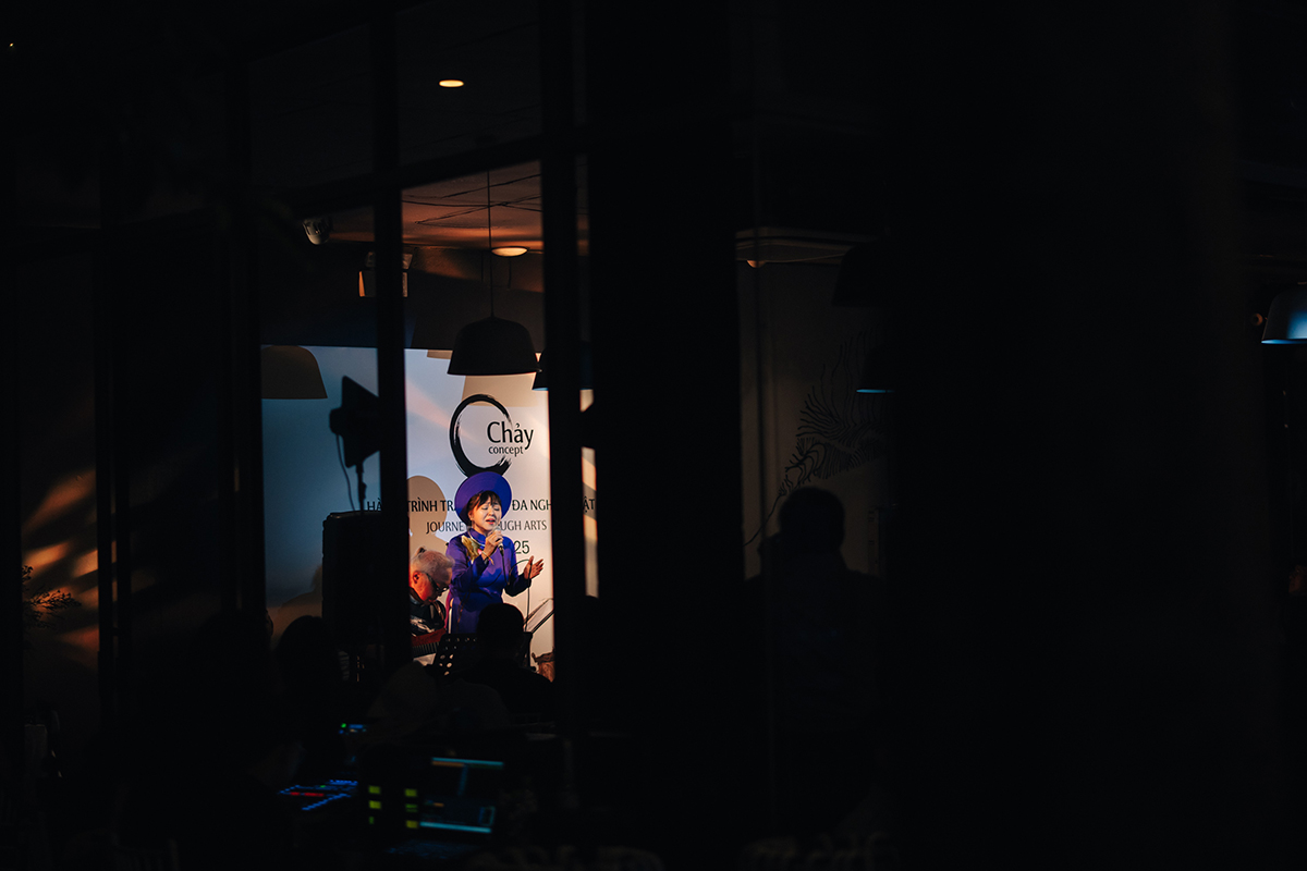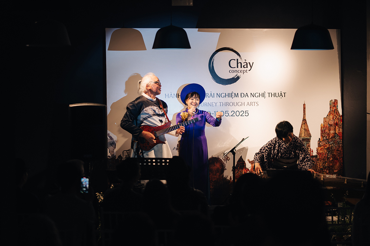 Tháng 5 vừa rồi, ở thành phố Huế đã diễn ra một trải nghiệm đa nghệ thuật mang tên Chảy Concept. Chảy Concept được cấu trúc chặt chẽ, với khởi đầu là chương trình khai mạc triển lãm “Vòng Sinh Tử” của hoạ sĩ Phạm Trần Việt Nam, sau đó là đêm nhạc “Qua cầu gió bay” của ba nghệ sĩ world-music nổi tiếng: Hương Thanh, Nguyên Lê và Mieko Miyazaki.
