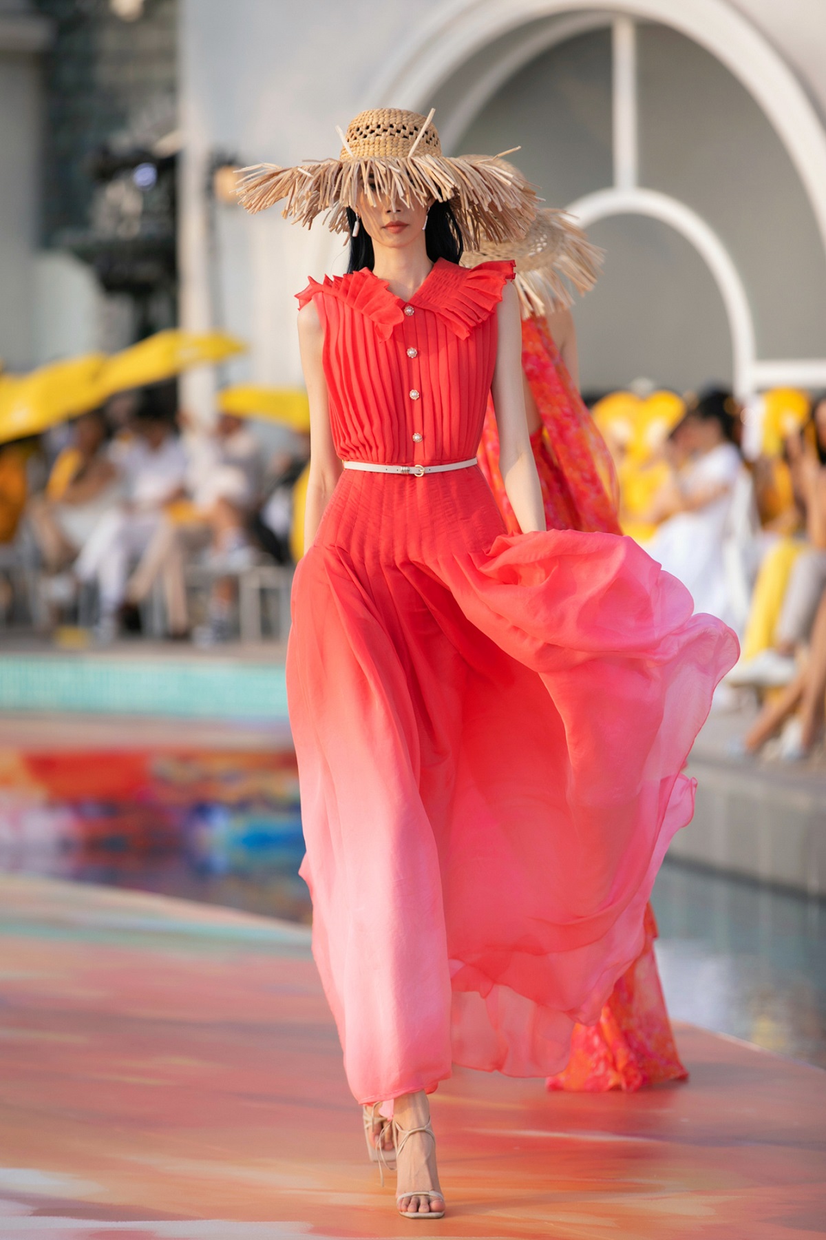 Hoa hậu Lương Thuỳ Linh đảm nhận vai trò mở màn cho show diễn với trang phục dạ hội xẻ tà khoe lợi thế chân dài, và phần vai hở tôn lên nét yêu kiều nữ tính của người đẹp. Các thiết kế khác trong bộ sưu tập cũng nhận được nhiều lời khen vì sự tinh tế, chất thơ mộng của ánh nắng hè thấm đẫm trong từng đường kim mũi chỉ.