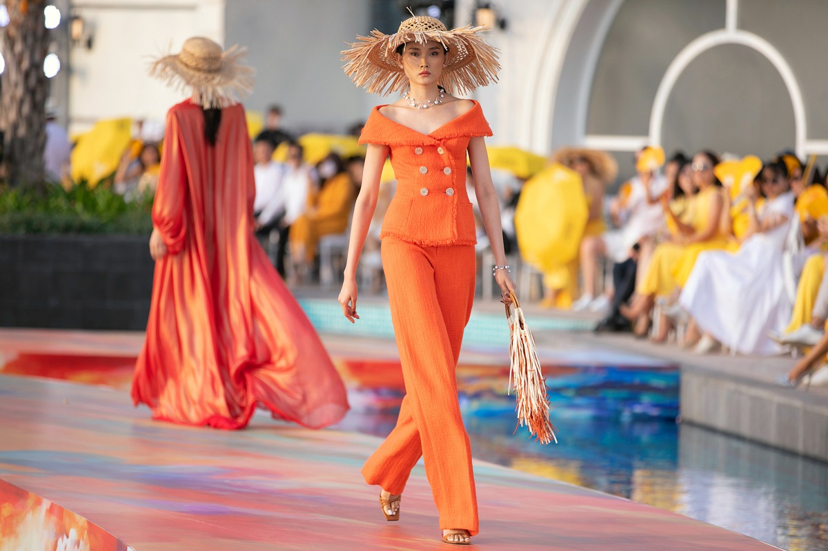 Trong sắc màu rực rỡ của BST, các người đẹp toả sáng trên sàn runway ngoài trời được đặc biệt thiết kế riêng cho chương trình Fashion Voyage 3 “Chasing The Sun”. Sàn diễn nổi trên mặt hồ bơi của resort Sun Premier Village Primavera, nhìn về phía biển, bắt trọn khoảnh khắc hoàng hôn đẹp lãng mạn của đảo ngọc Phú Quốc.