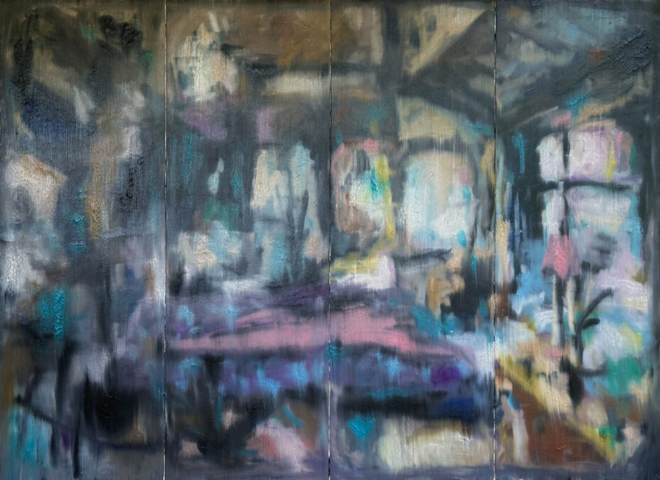 Nhắc đến sự chuyển biến này, với tôi, ba là một nguồn cảm hứng lớn. Có một khoảng thời gian ba không may đột quỵ và kéo theo hệ lụy là bị liệt nửa thân, một bên mắt không còn nhìn thấy và nhận thức như một đứa trẻ. Đó là lúc chính bản thân tôi cũng cảm thấy tiêu cực về mọi thứ. Hội họa vừa hay lại là ngọn đèn soi đường tôi bước tiếp. Tôi kiếm tìm sự đồng điệu với ba qua đôi mắt cận khi tháo kính, làm mọi thứ nhòe đi. Từ đây, các thực hành mới nhất của tôi đều có sự thay đổi đáng kể trong lối vẽ.