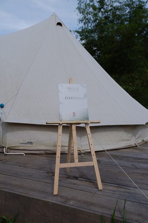 Kết thúc buổi jam cũng là thời khắc chạng vạng, mọi người cùng nhau tiến về khu vực sân khấu rực sáng ánh đèn. Ở đây, tất cả nghệ sĩ và khách mời lần lượt kí tên mình lên tấm bảng lớn, như một kỷ niệm chung cho đêm trại đầu tiên cùng nhau. Ký xong, mọi người ổn định chỗ ngồi nơi bàn tiệc, cùng nhau thưởng thức những món thịt và rau nướng đậm chất du mục, cùng các loại thức uống đa dạng.