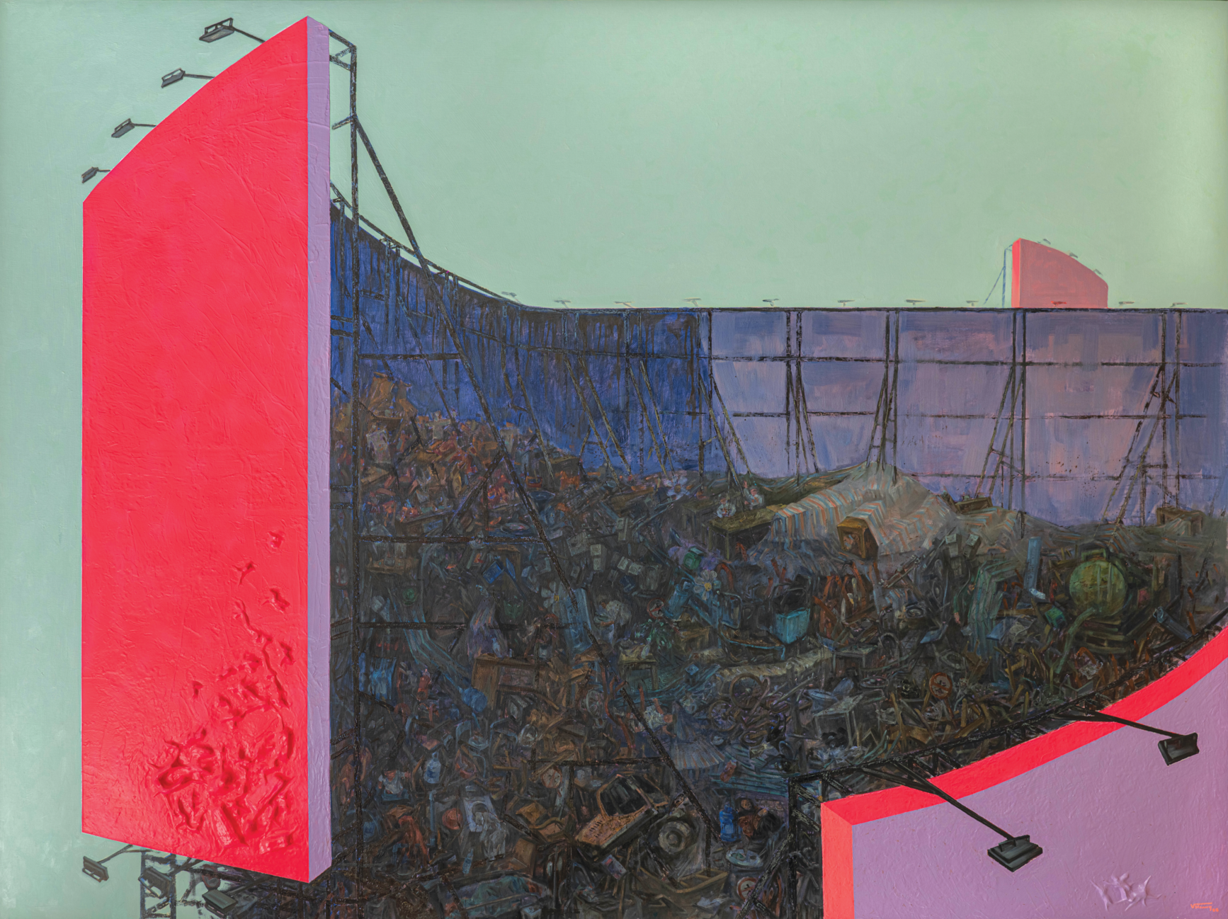 Được sáng tác bằng chất liệu sơn mài và kỹ thuật ăn mòn axit trên hợp kim nhôm, tác phẩm thể hiện sự đồng cảm sâu sắc của người nghệ sĩ 30 tuổi dành cho tầng lớp lao động, đồng thời khắc họa những thân phận bị dịch chuyển trong cuộc sống mưu sinh, tinh thần đoàn kết của con người và quá trình đô thị hóa ở những thành phố lớn, thông qua qua lăng kính chất liệu và kỹ thuật đương đại.