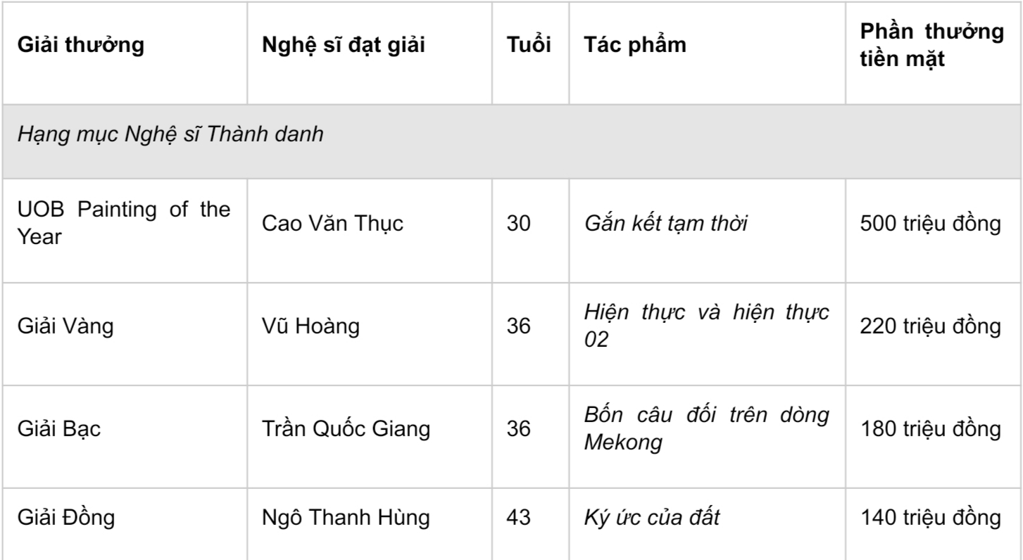 Danh sách các nghệ sĩ và tác phẩm đạt giải cuộc thi UOB POY năm 2025 tại Việt Nam