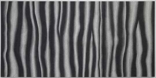 Đa số những tác phẩm của bà thời kỳ này gợi lên cảm giác tang thương với những dải màu đen, trắng thẳng đứng gợn sóng được bao phủ bởi chấm bi đặc trưng.