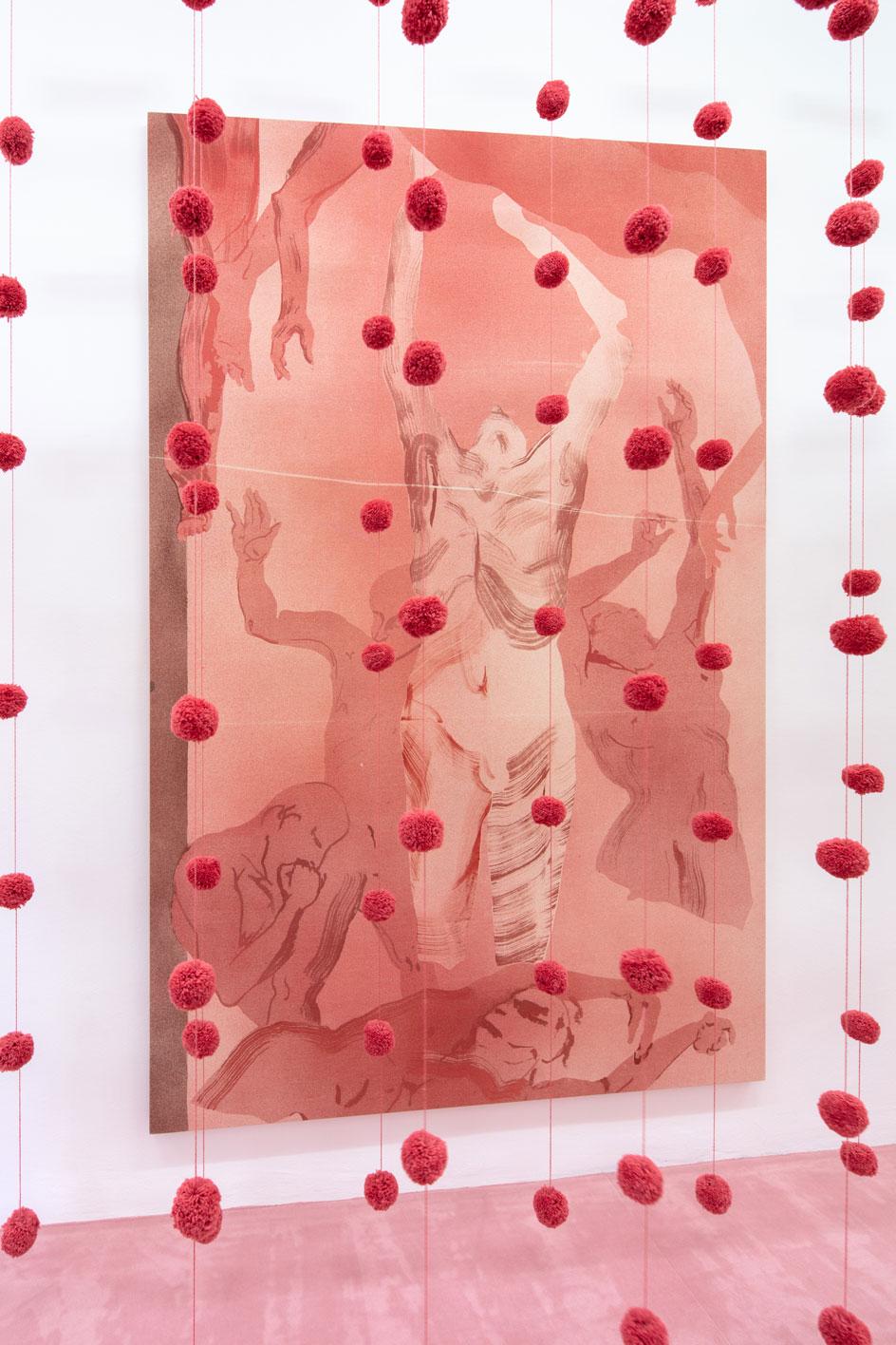 Tại Bảo tàng Frieder Burda’s Salon Berlin, du khách choáng ngợp và mê hoặc hoàn toàn trước tác phẩm huyền ảo hiện lên như những đám mây treo lơ lửng trên trần nhà và đệm thảm hồng êm ái dưới chân. Ở đây, nghệ sĩ người Mỹ gốc Paris – Matthew Lutz-Kinoy đang thể nghiệm ý tưởng táo bạo nhằm dẫn dắt người xem vào một thế giới khác.
