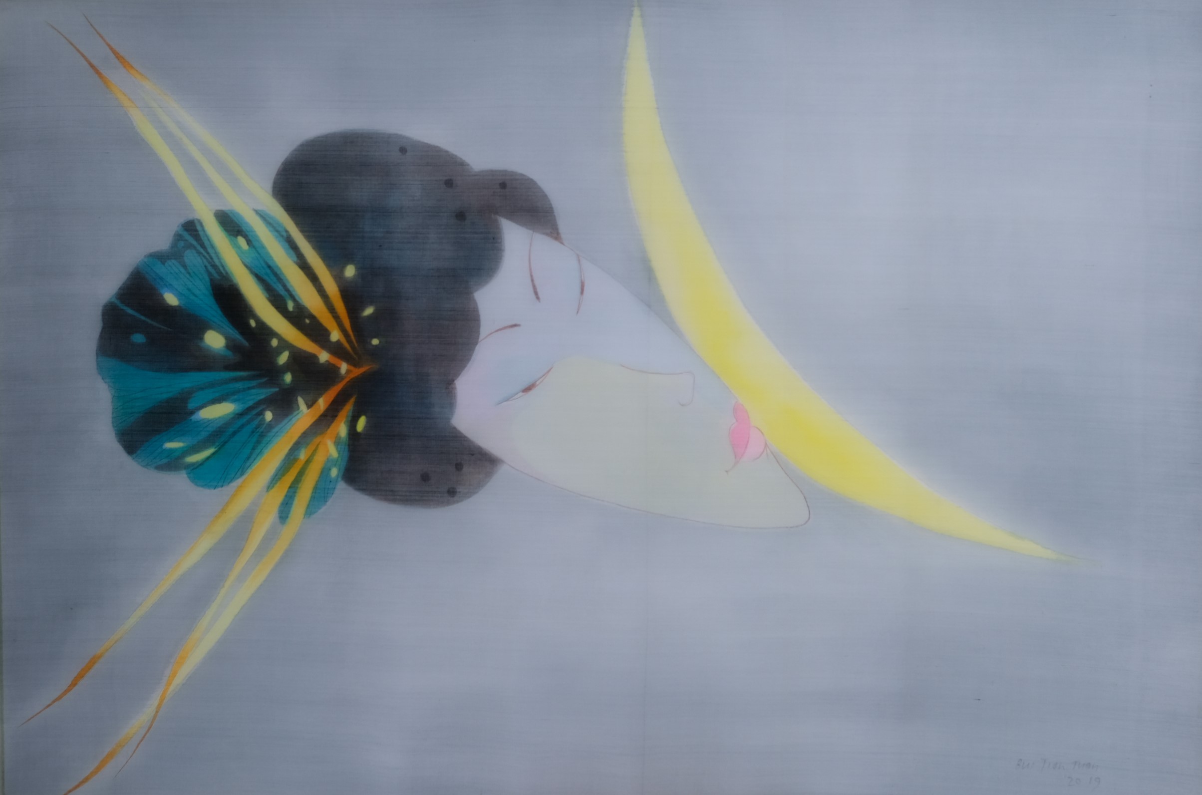 TUỔI TRĂNG NON – 64cm x 94cm – mực acrylic trên lụa – 2019