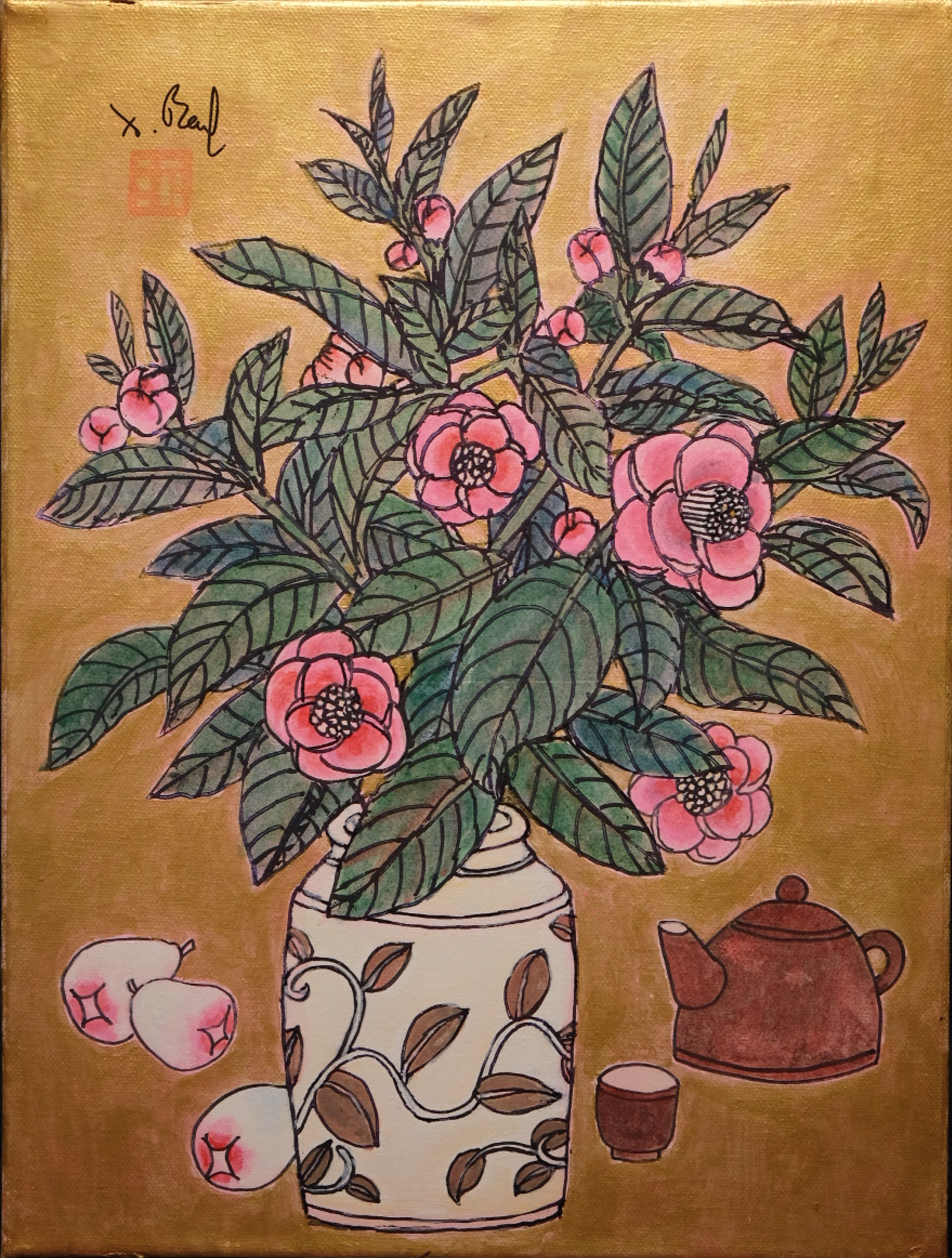 Tĩnh vật Hoa Hải Đường _ Still life with camellia